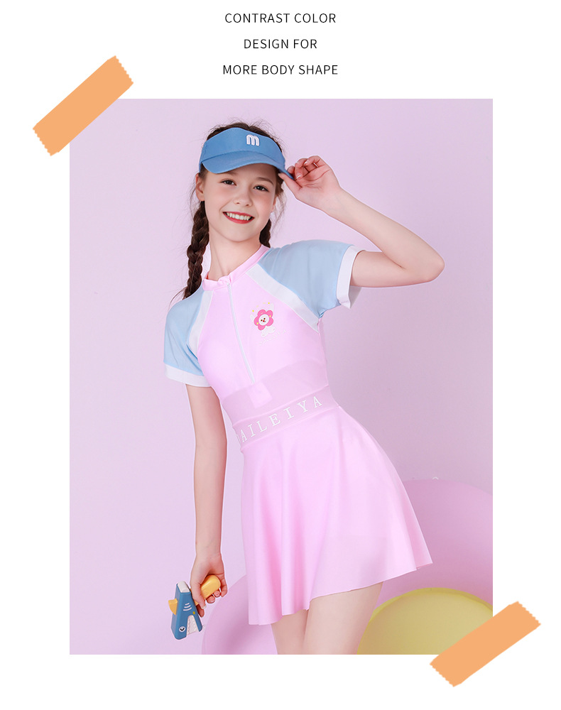 2025新款儿童泳衣女孩夏速干连体游泳衣女童学生保守沙滩泳装批发