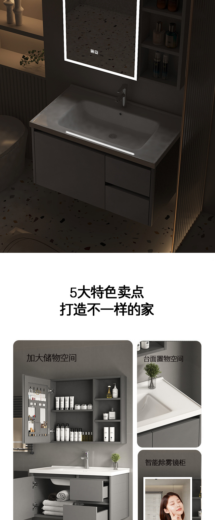 蜂窝铝浴室柜组合一体陶瓷洗手盆家用卫生间洗脸盆柜洗手间洗漱台