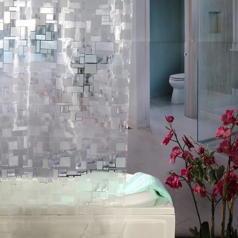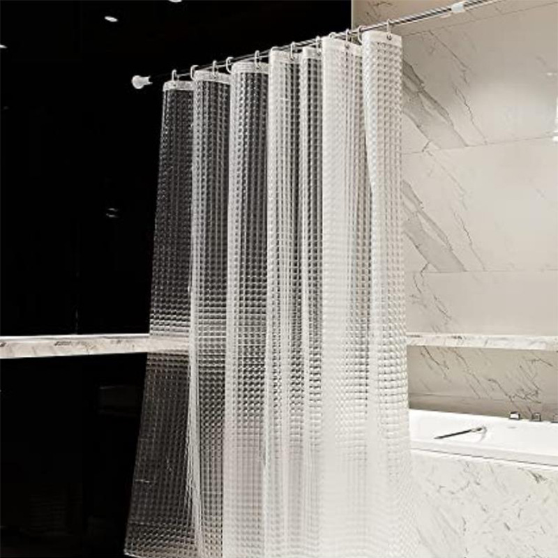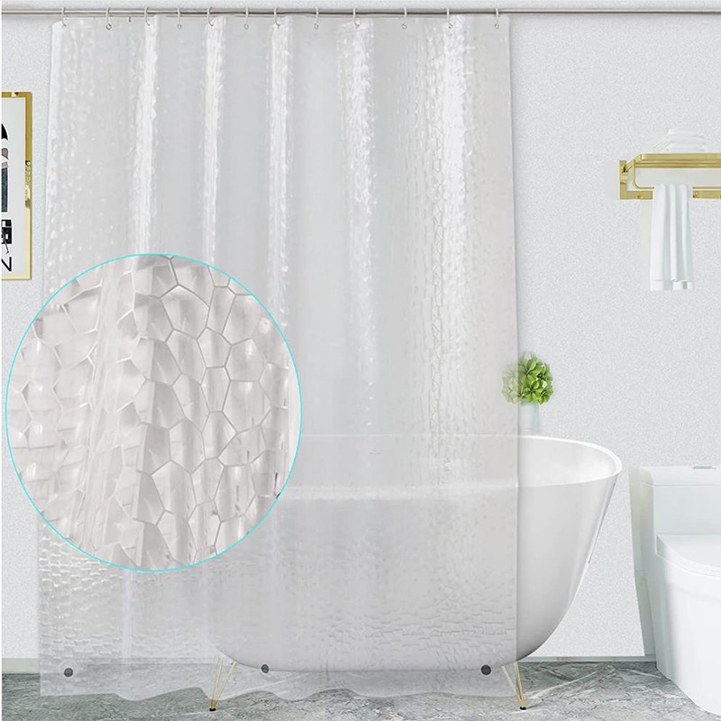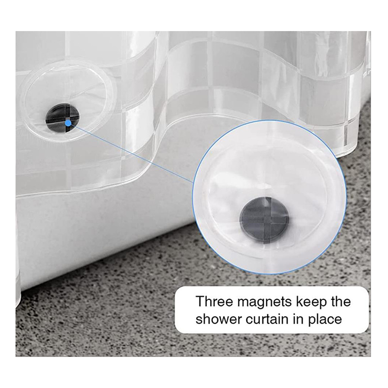 现货PEVA 3D透明浴帘内衬带磁铁防水不锈钢扣浴室帘带挂钩批发