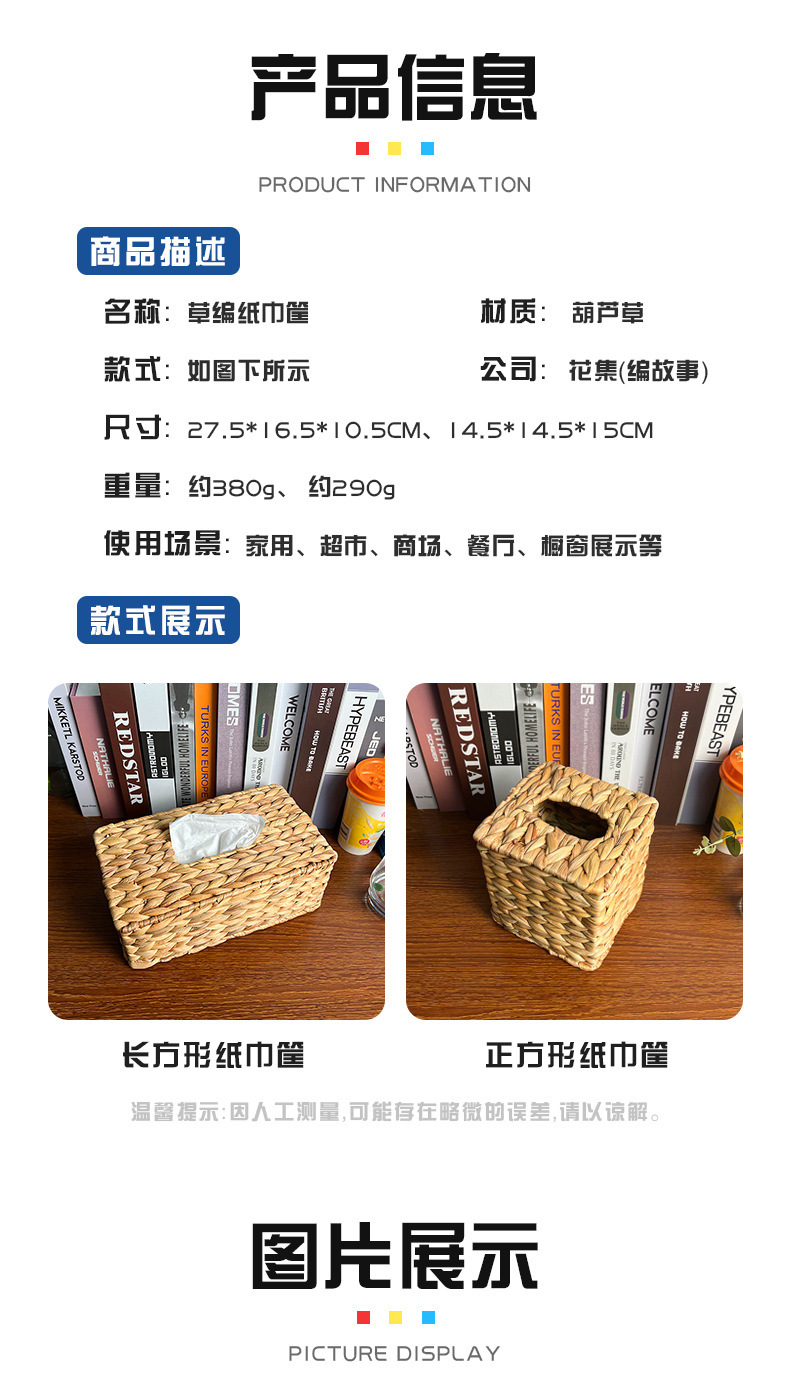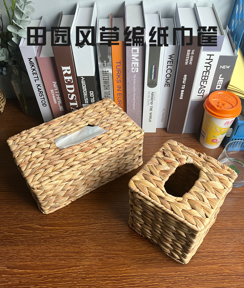 跨境田园风草编纸巾筐水葫芦草手工编织收纳筐桌子桌面摆件抽纸盒