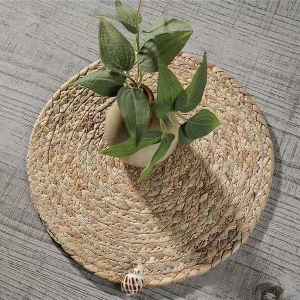 跨境日式手工水葫芦草编织隔热杯盘垫圆形椭圆形家用餐桌防热餐垫