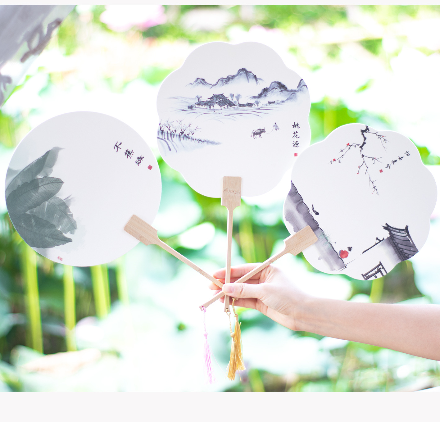 漆扇水墨画扇国画专用文字款图案diy古风书法带图漂漆扇大漆扇子