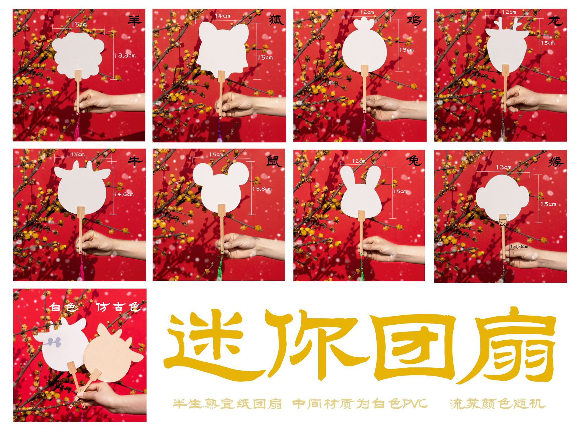 迷你团扇小号非遗漆扇diy双面空白漂漆手绘复古古风宣纸大漆扇子