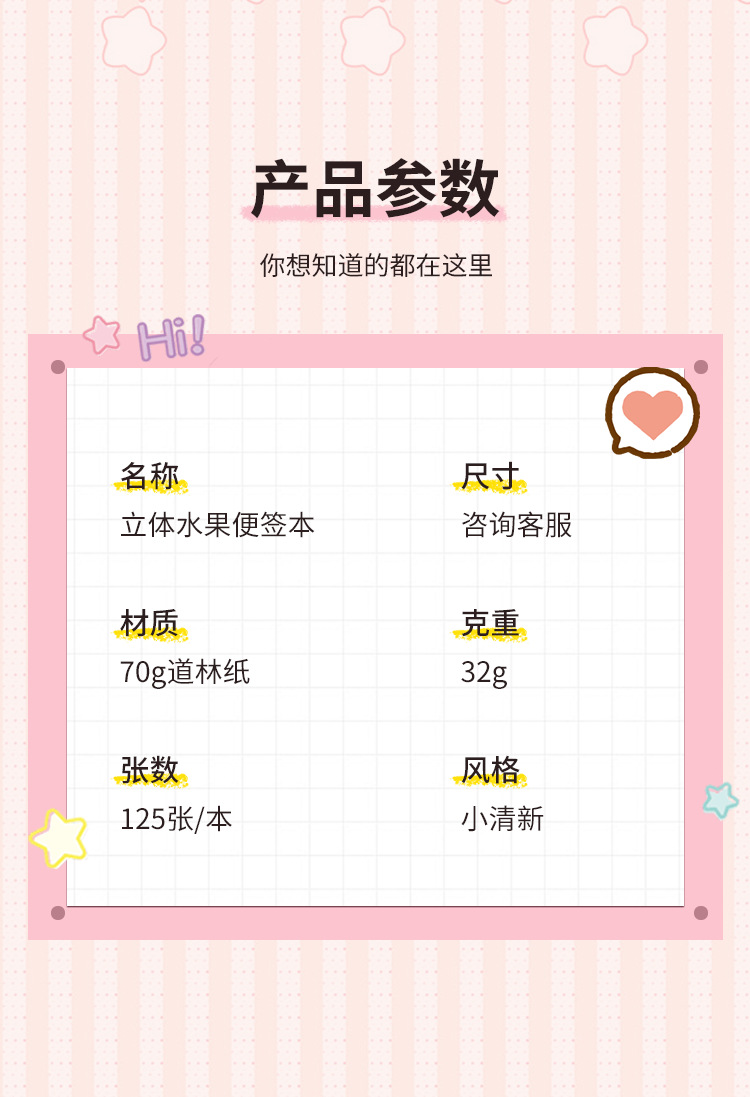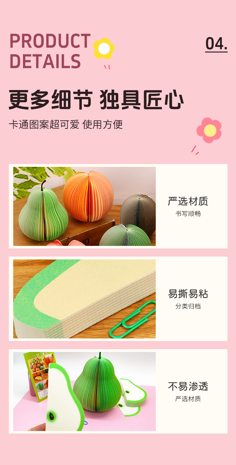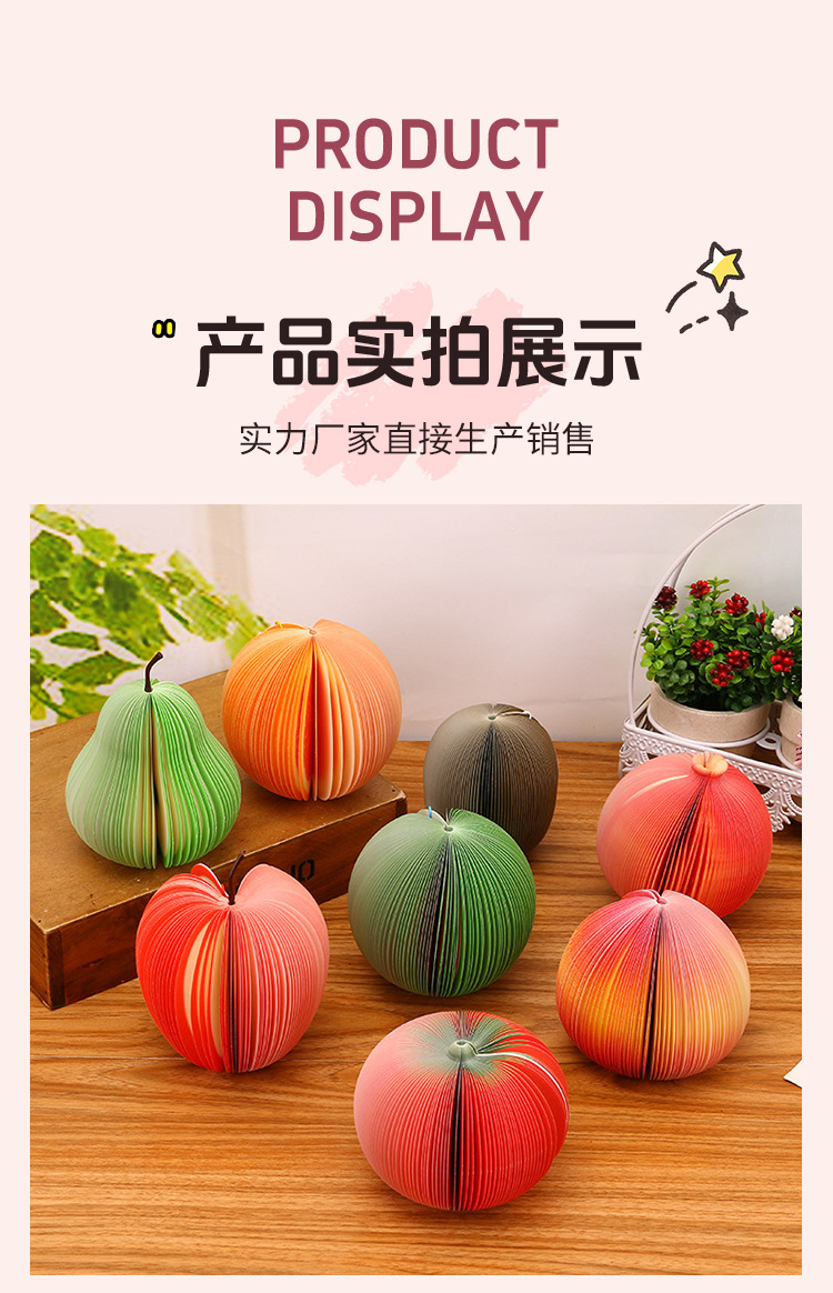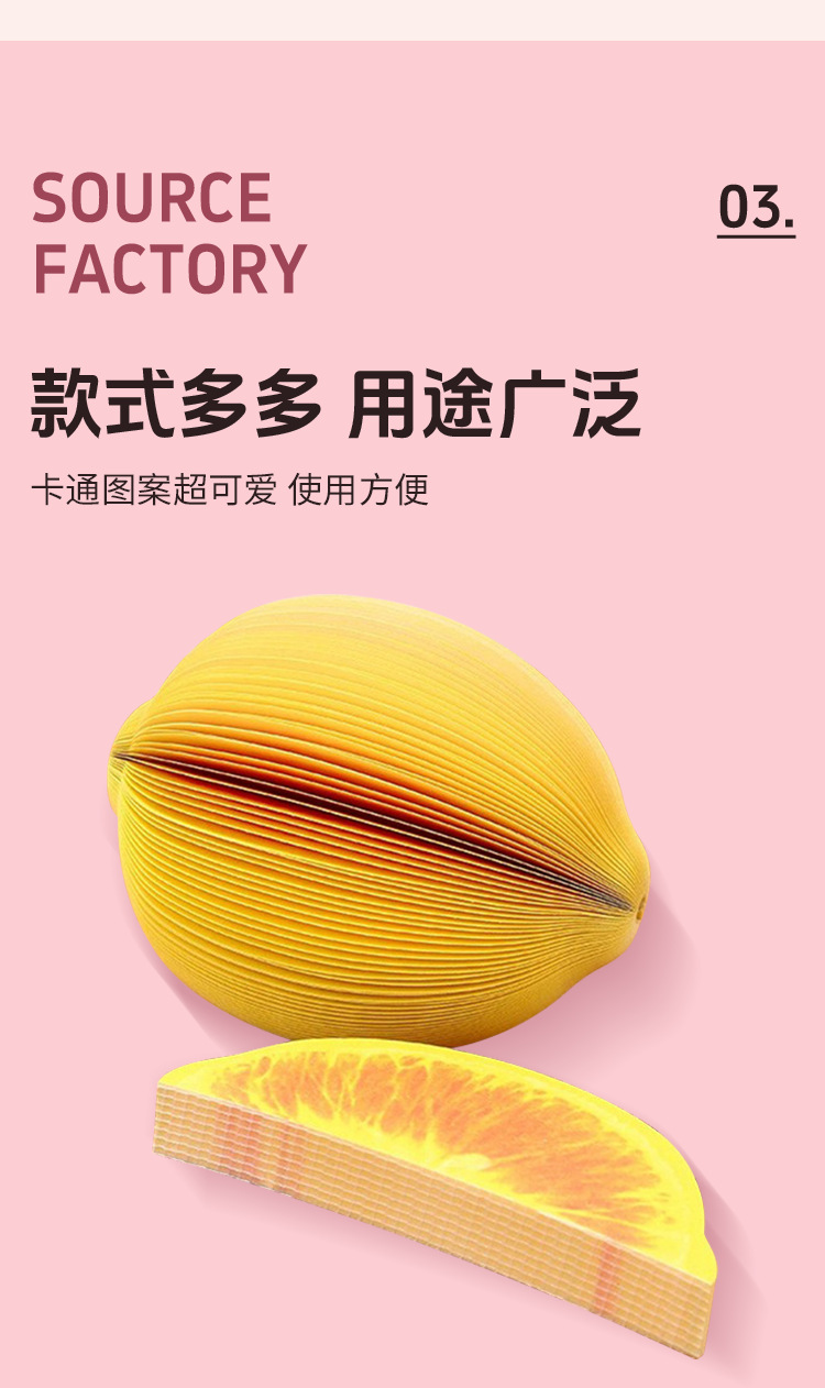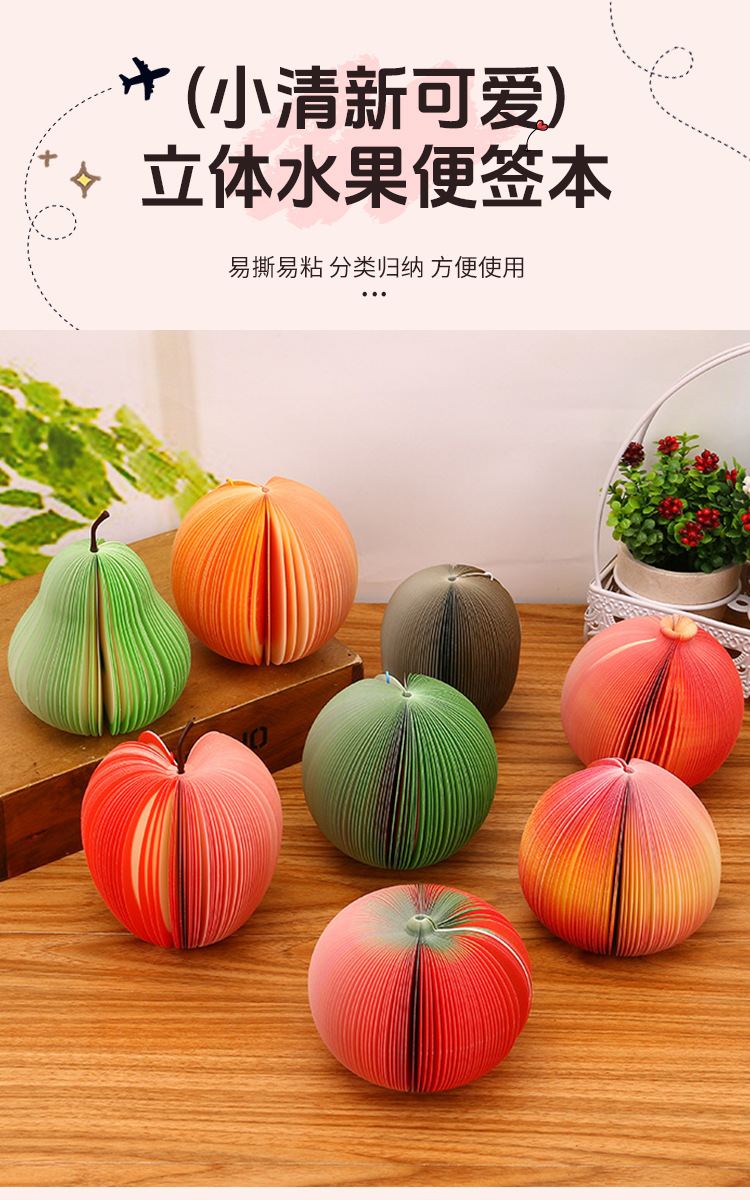 厂家批发立体创意水果无粘性便签纸 ins小清新可爱异形留言便签本