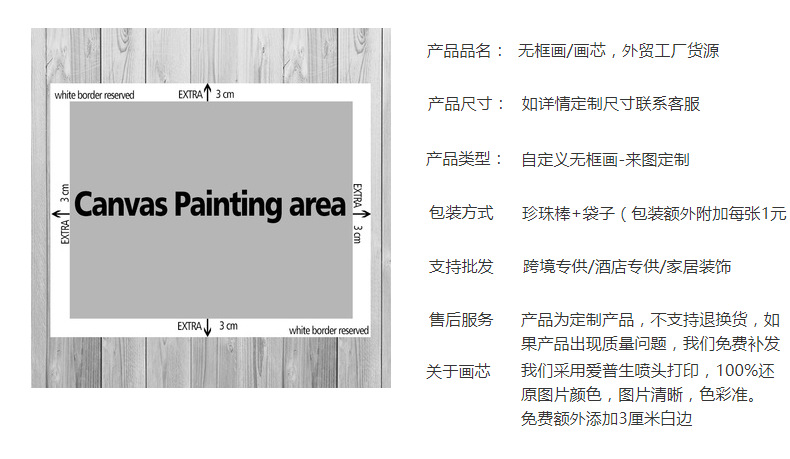 跨境供应自定义装饰画帆布无框画芯北欧高清喷绘一件定制代发