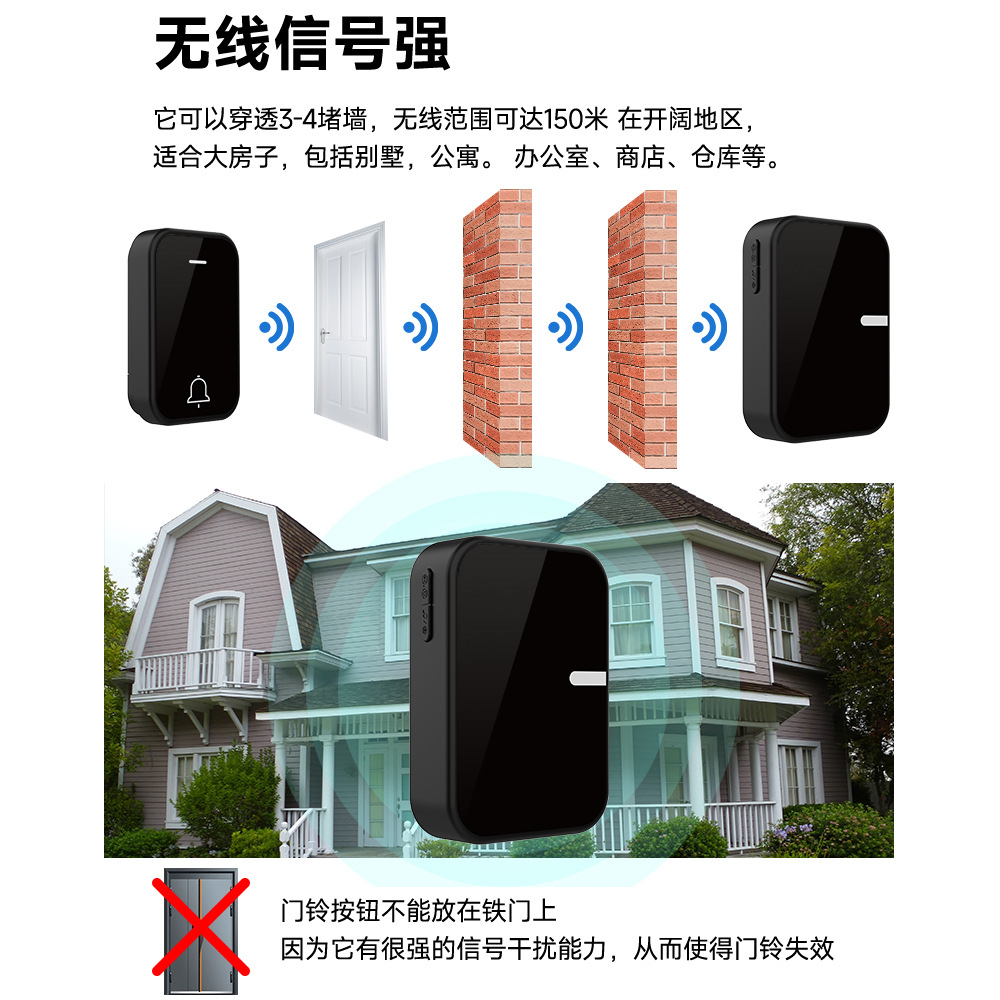 跨境新款防水自发电门铃丝印logo图案家用智能远距离电子门铃工厂