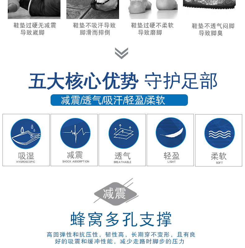 运动鞋垫蜂窝高弹减震吸汗透气加厚篮球男女跑步舒适跨境鞋垫批发