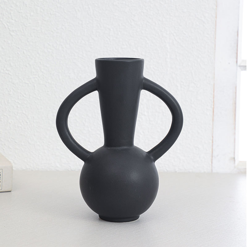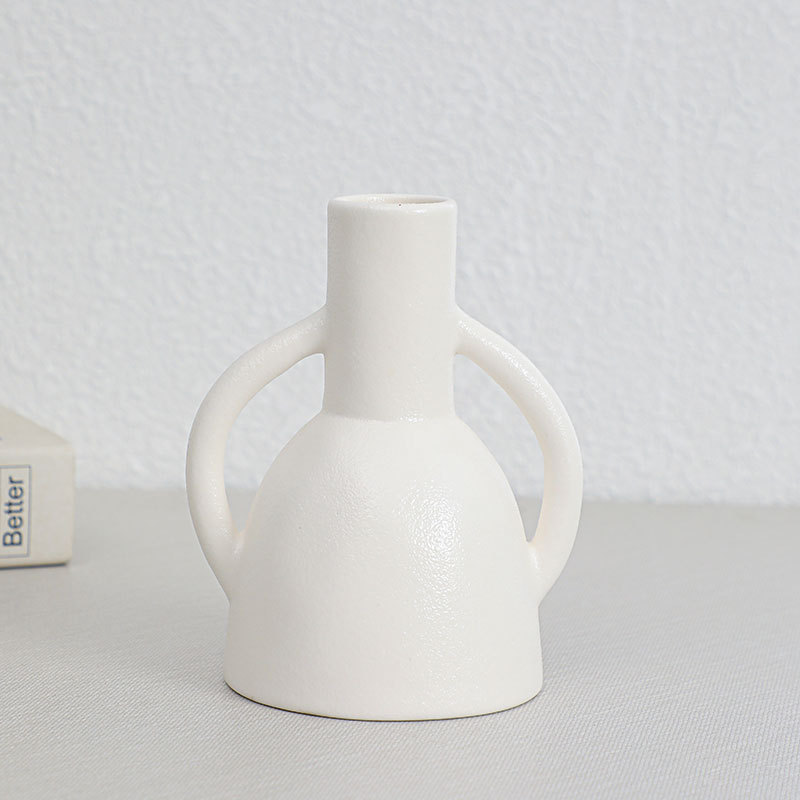 双耳花瓶陶瓷摆件 水培鲜花花插陶瓷罐北欧ins桌面酒店民宿装饰品