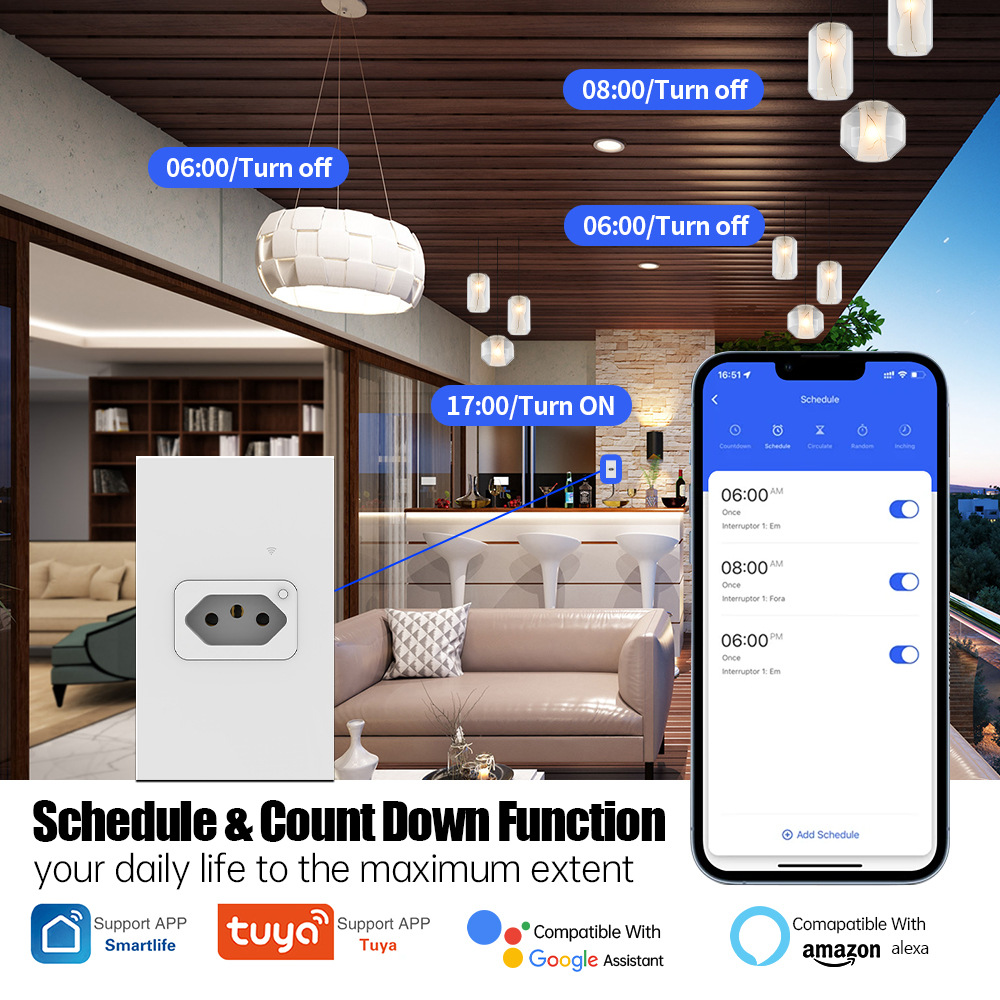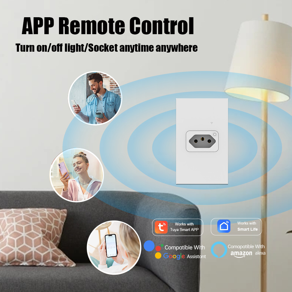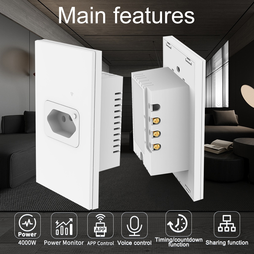 涂鸦WIFI巴西规智能插座16A Alexa语音WiFi插座手机APP控制计量