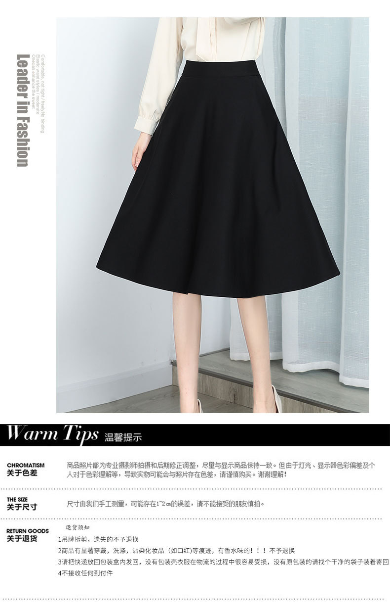 春秋中长太阳裙高腰半身裙弹力显瘦大摆裙松紧腰口袋百褶裙女黑裙