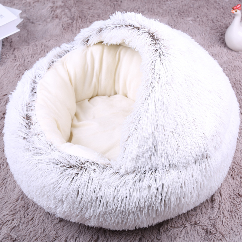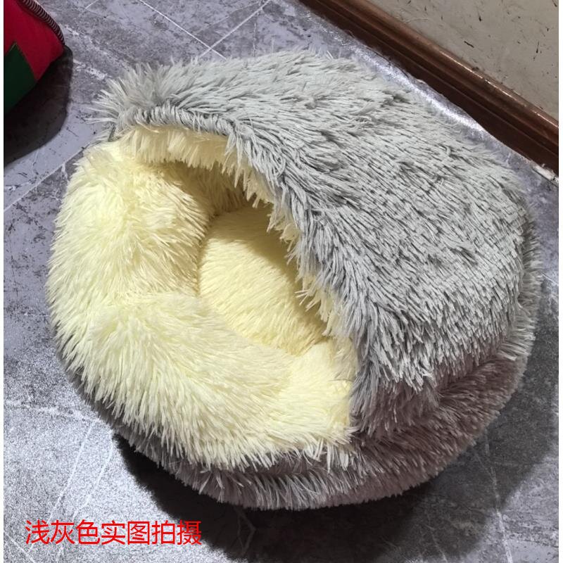长毛圆形带盖狗窝猫窝刮底款式内里布料款式长毛款