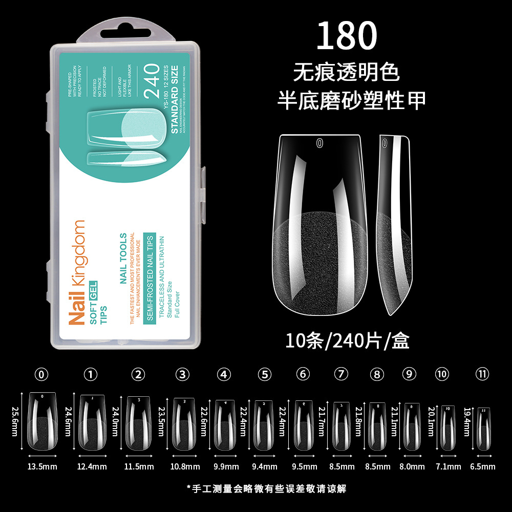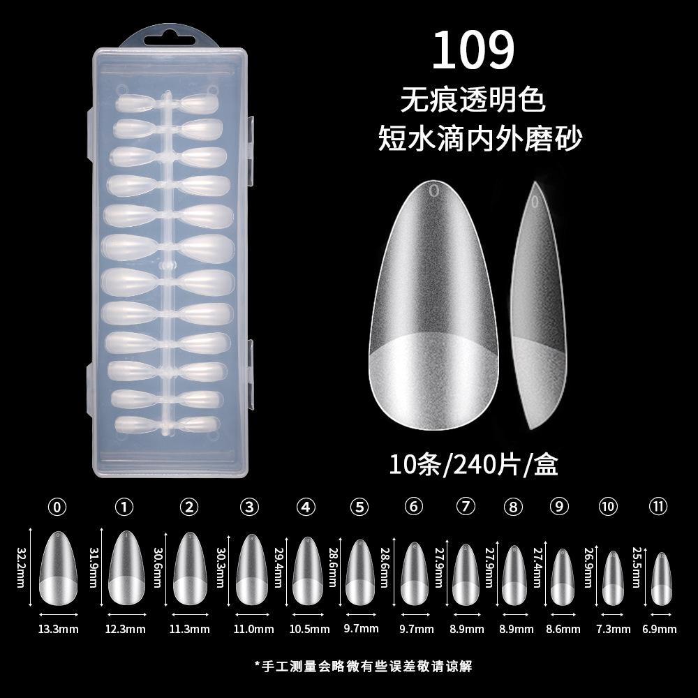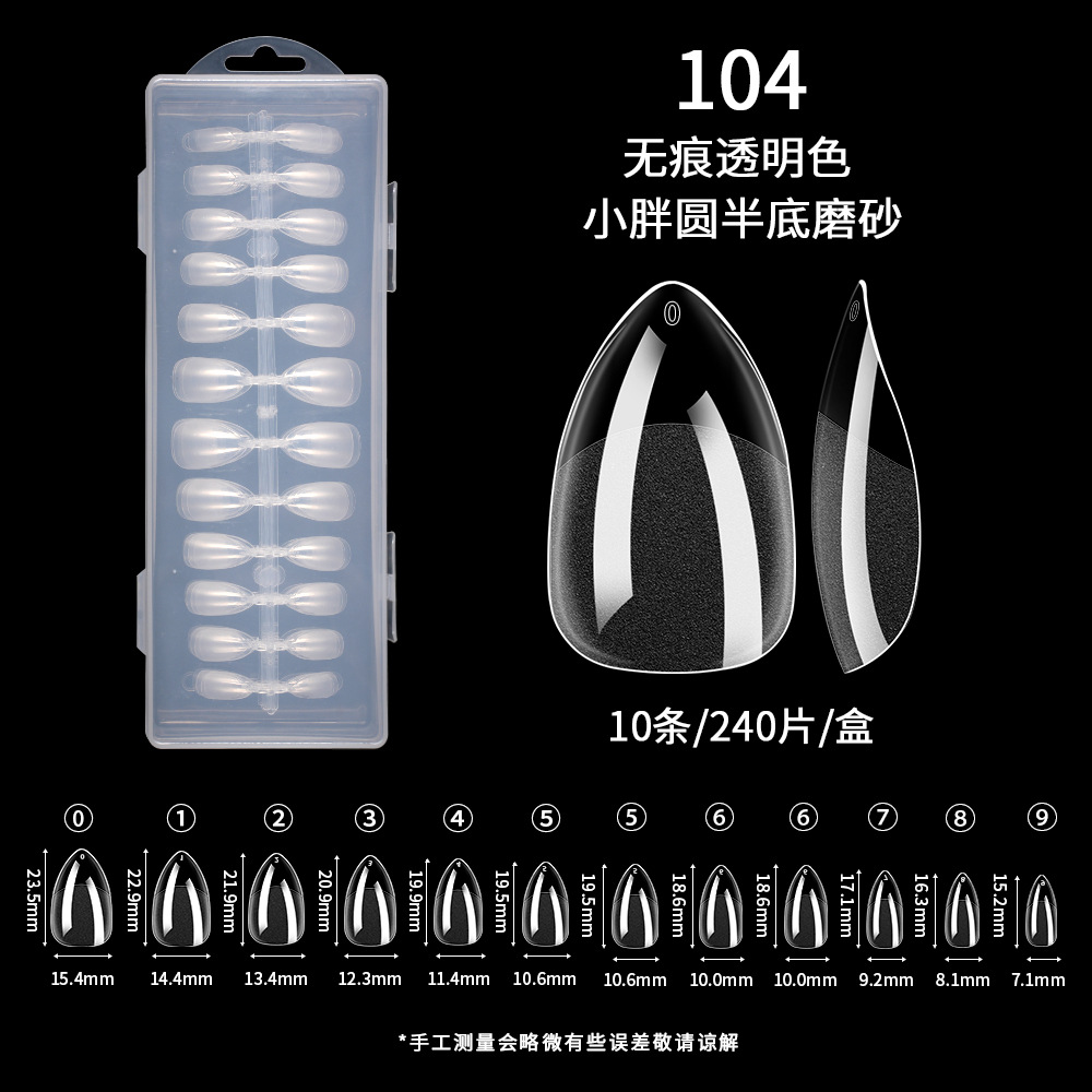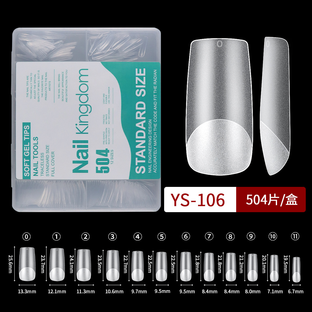 欧美热卖美甲甲片透明半磨砂超薄无痕全贴梯形假指甲片批发504片