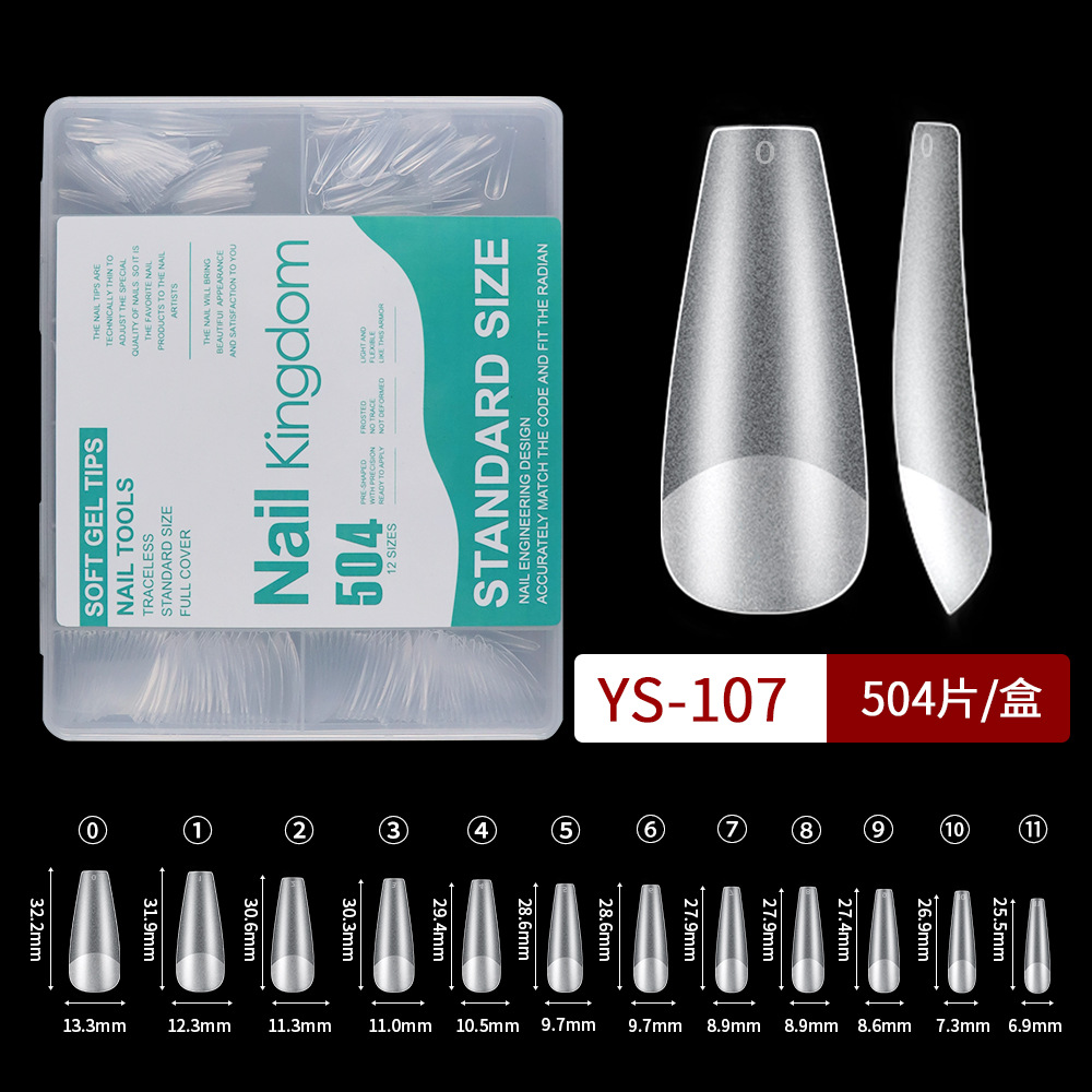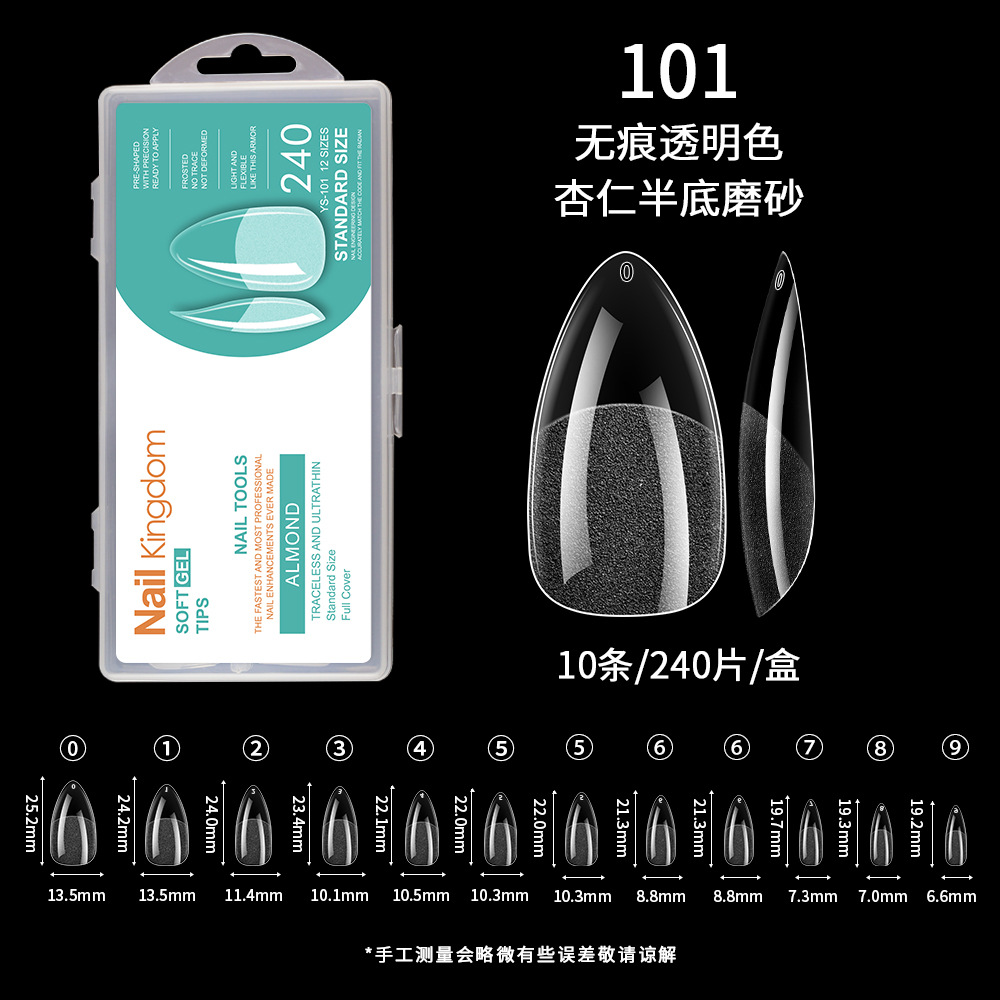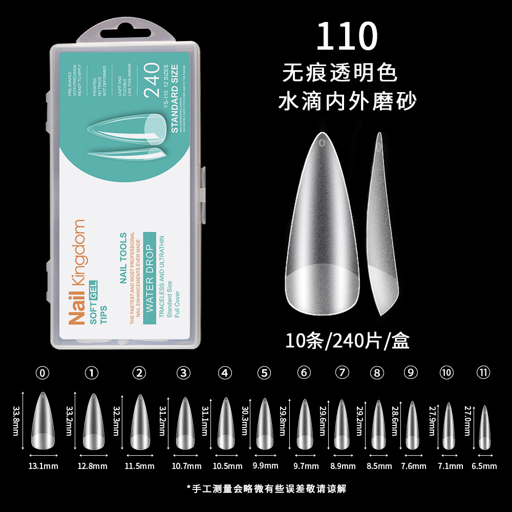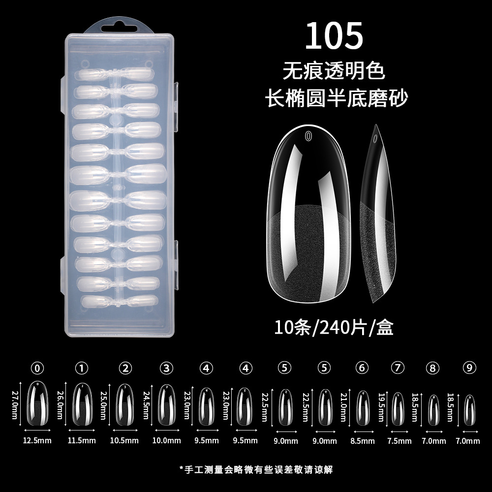 欧美热卖美甲甲片透明半磨砂超薄无痕全贴梯形假指甲片批发504片