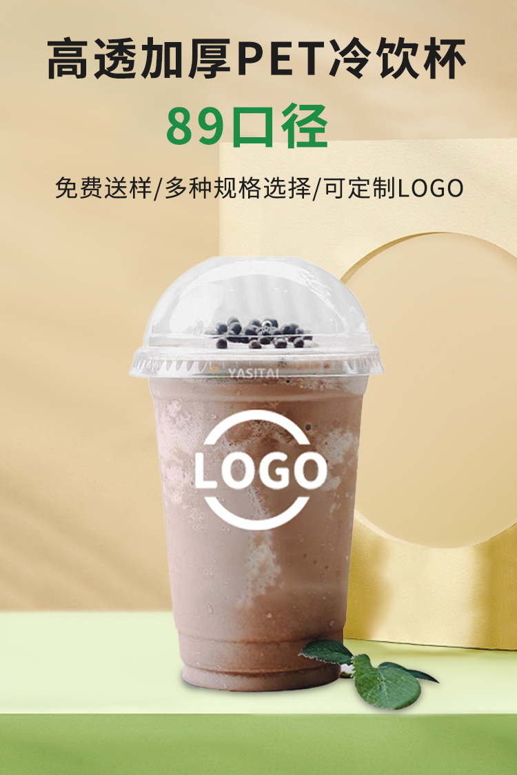 厂家pet89口径一次性咖啡杯加厚冷饮塑料杯奶茶杯子批有盖子批发