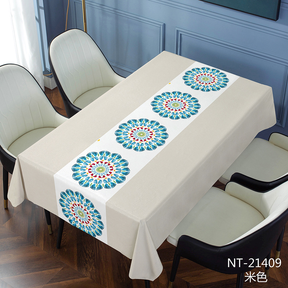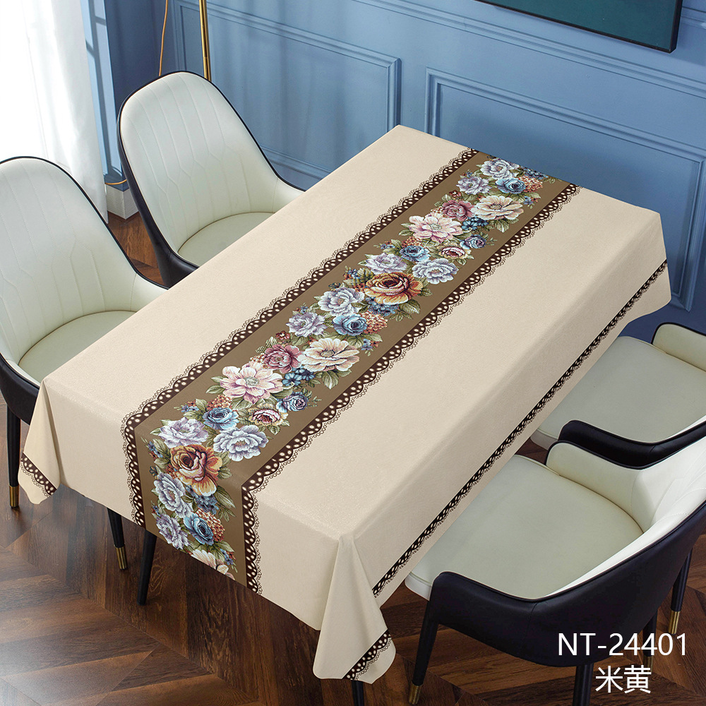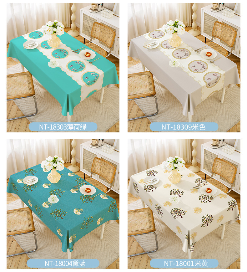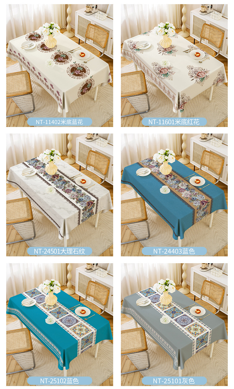 新中式家用防水防油PVC桌布台布长条刺绣摆摊餐桌布茶几盖布批发