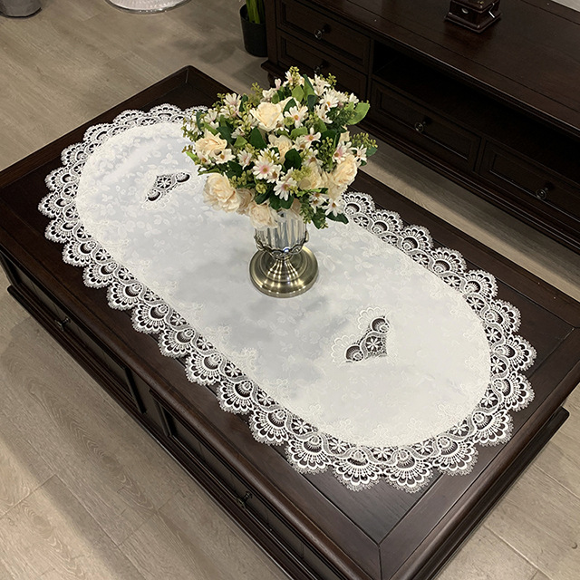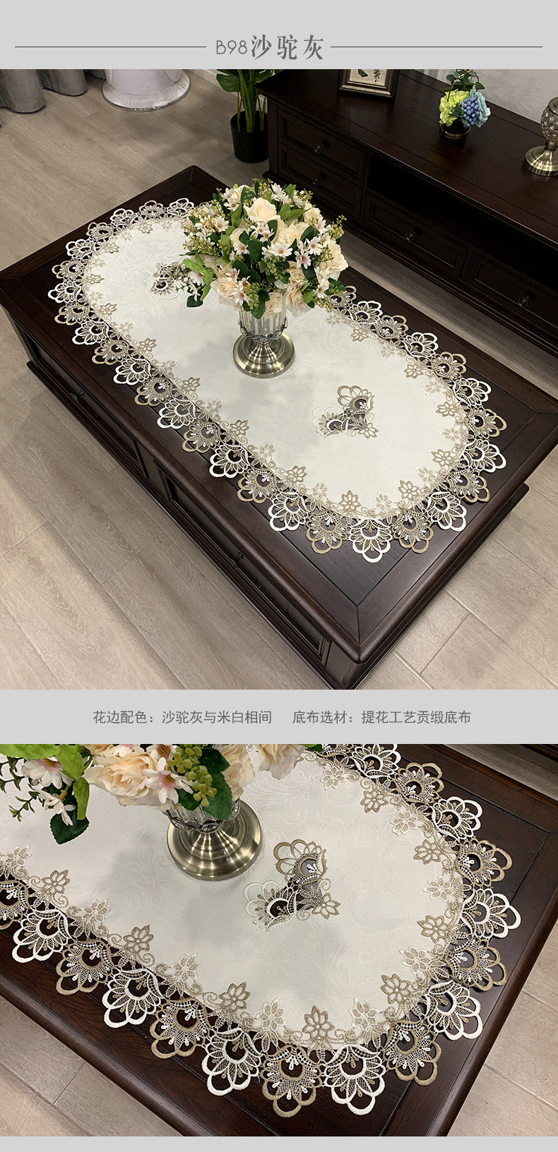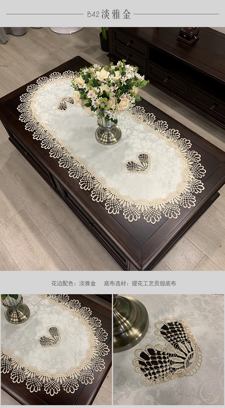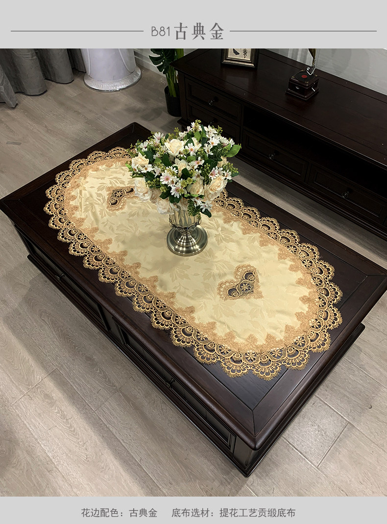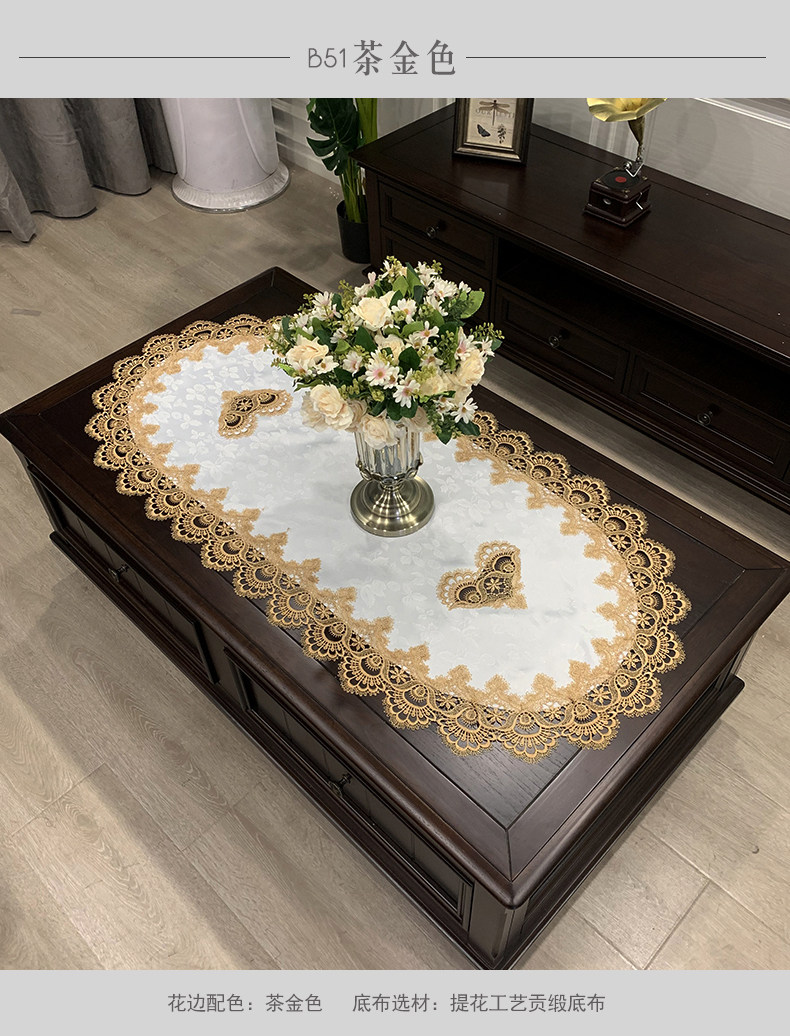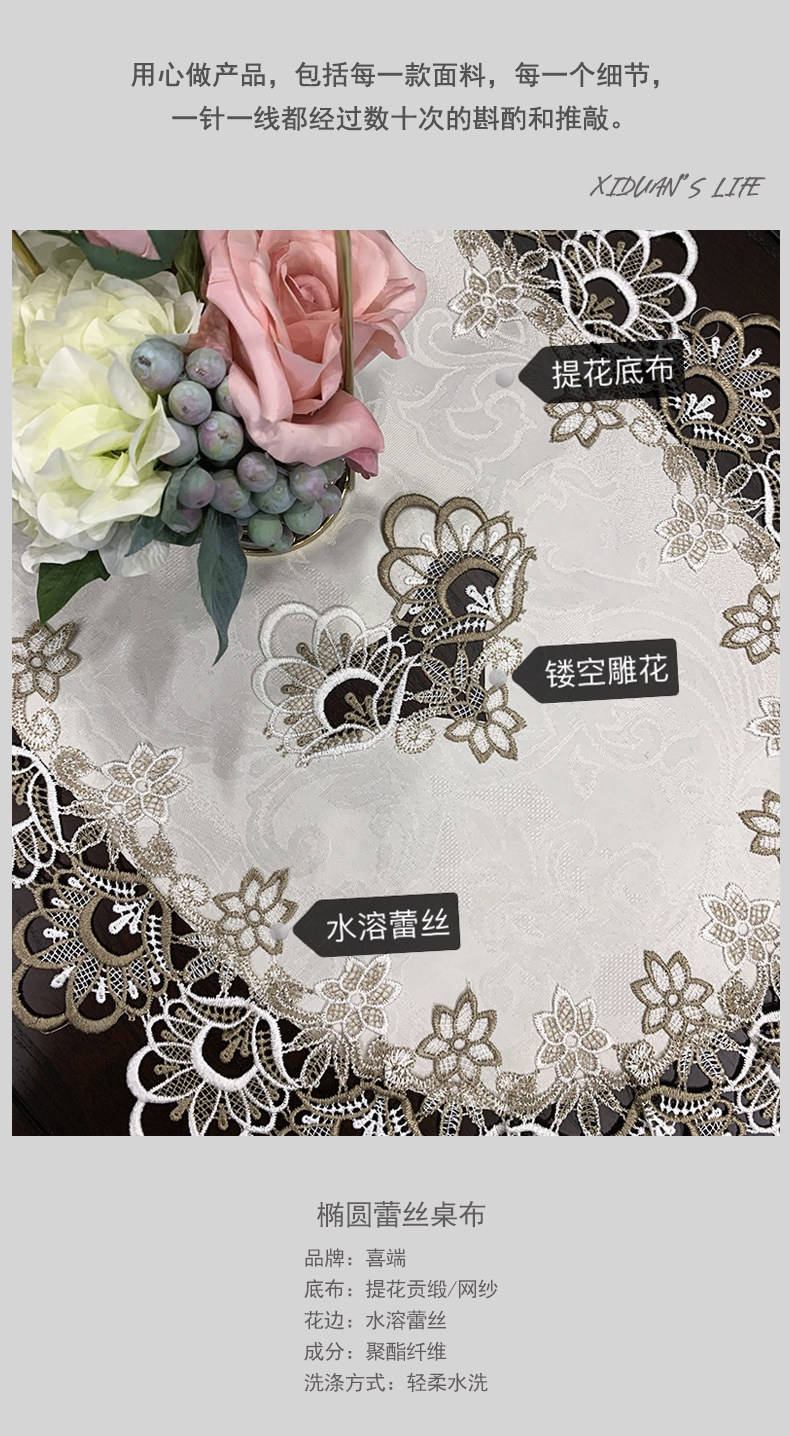 椭圆形茶几桌布客厅桌垫蕾丝茶几布艺垫欧式现代简约餐桌美式台布