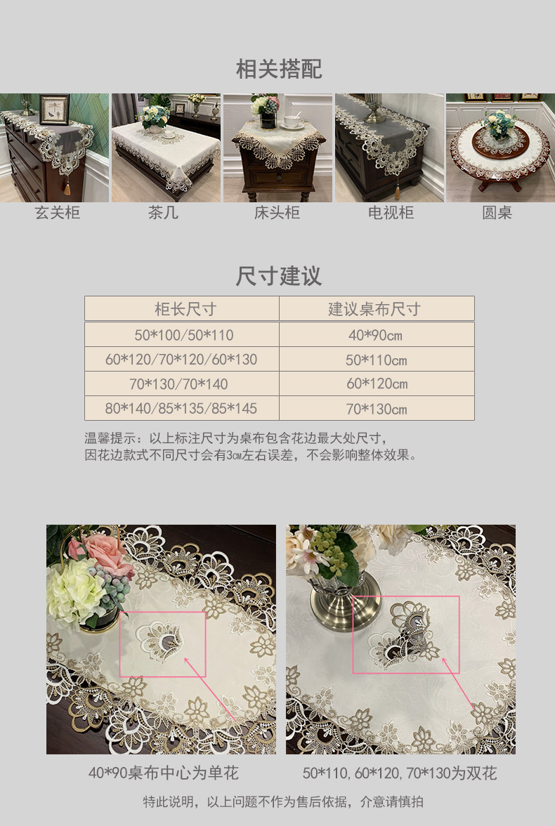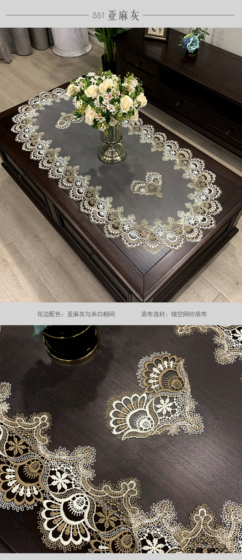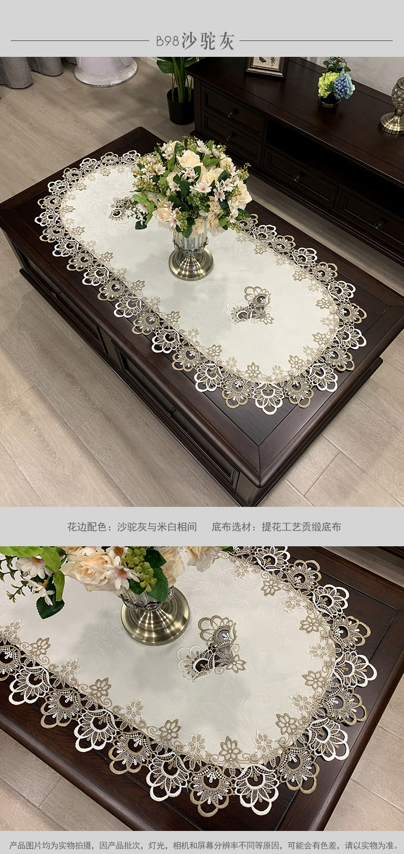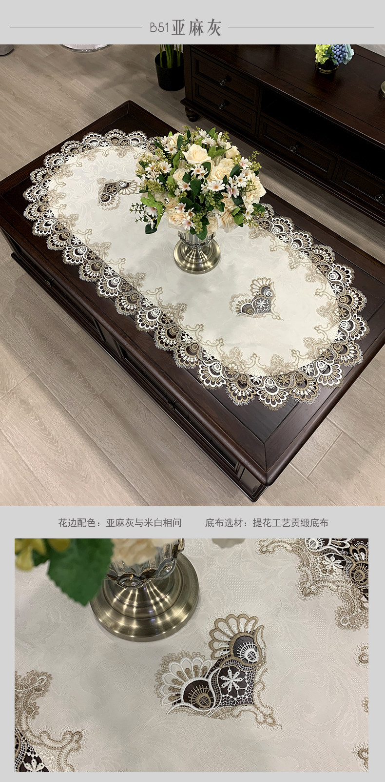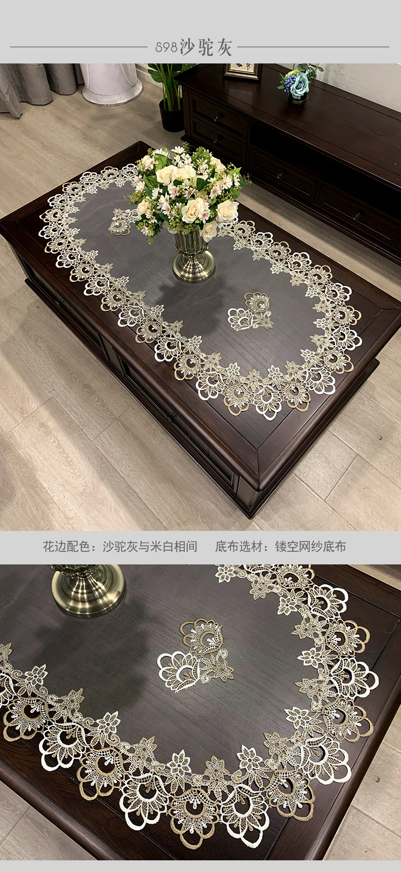 椭圆形茶几桌布客厅桌垫蕾丝茶几布艺垫欧式现代简约餐桌美式台布