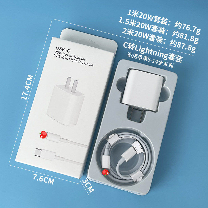 | fast charging head (3c certification) + fast charge line 1 m (applicable to apple 8-14)(快充头(3C认证)+快充线1米(适用苹果8-14)) | USD $3.36 | 99318 set available |
