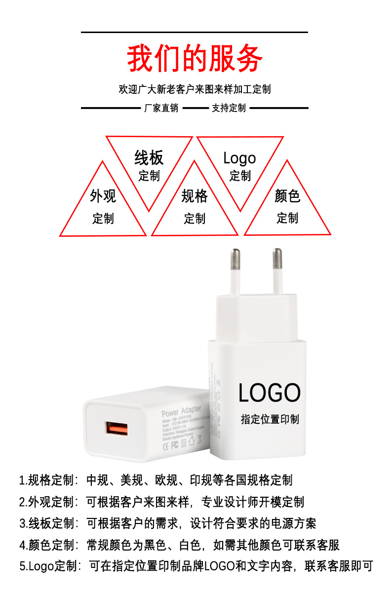 欧规5V2A充电器USB充电头5V1A电源适配器ce认证5V 2.1A手机快充头