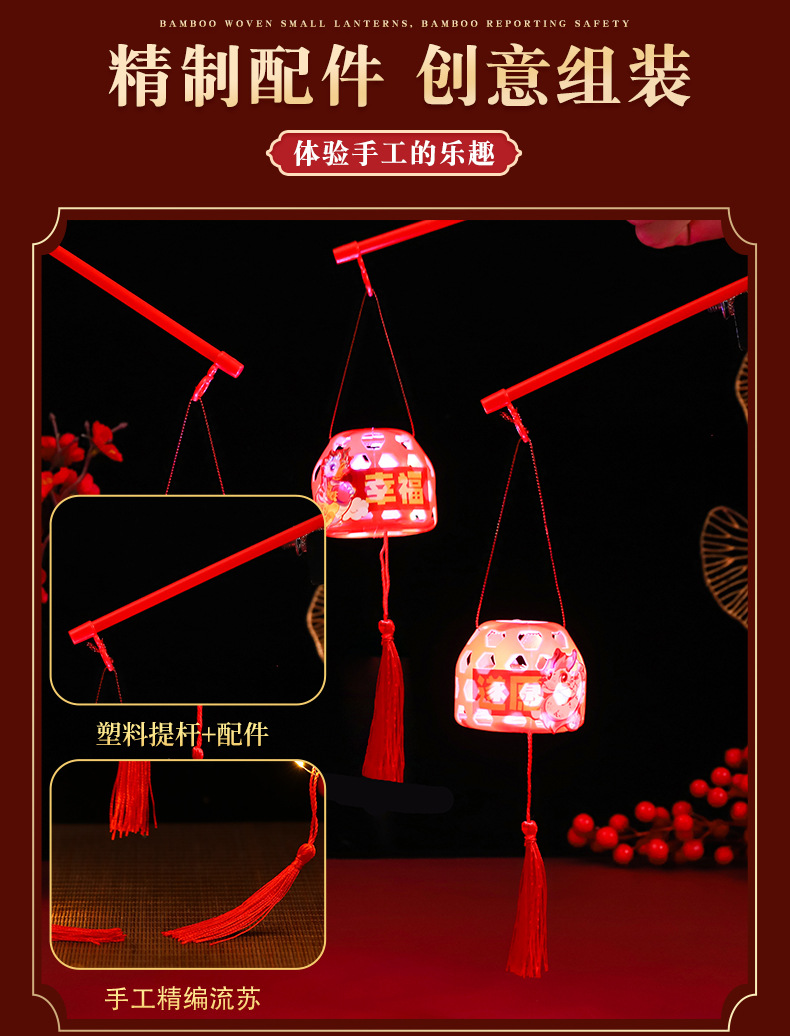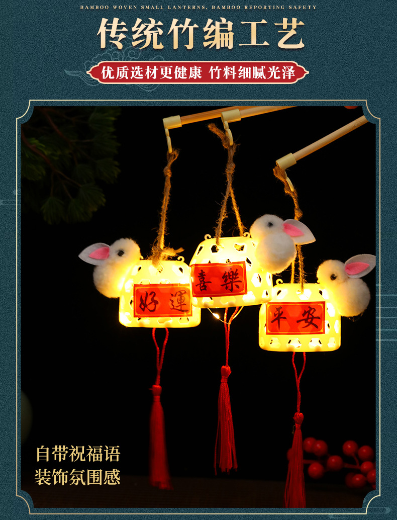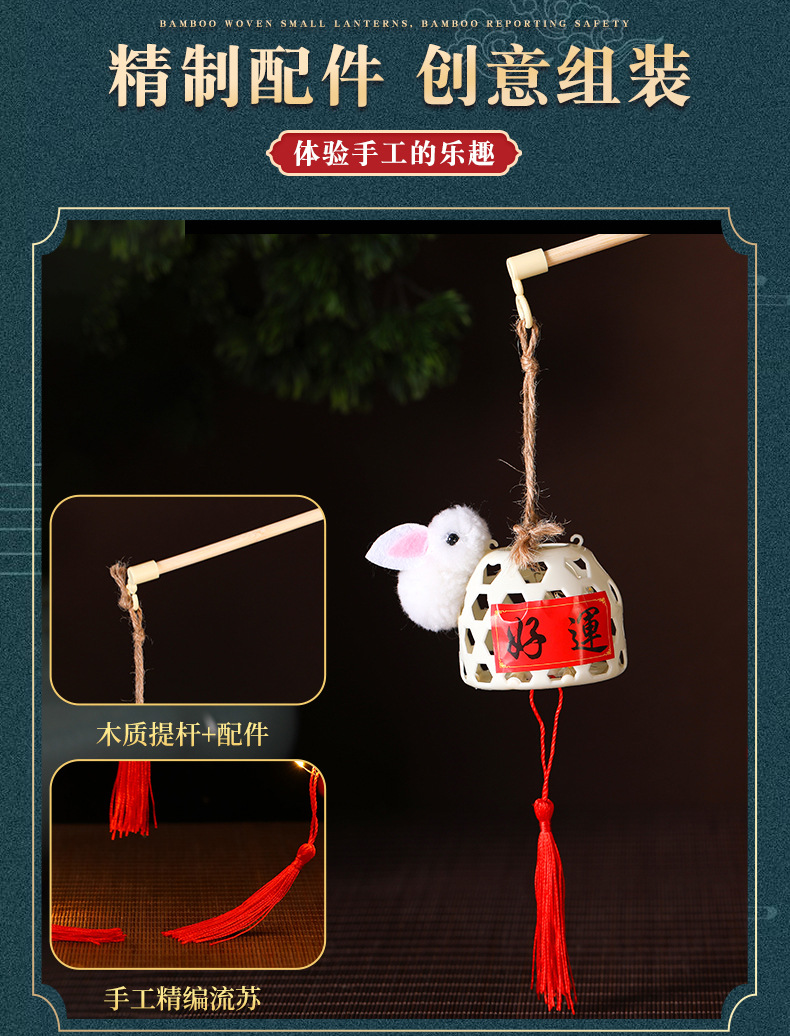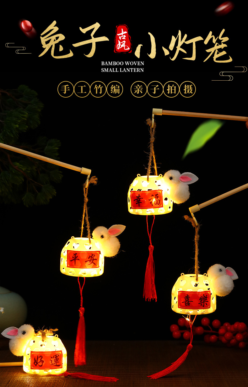 新款发光竹编灯笼迷你古风diy节庆儿童手提花灯五一摆摊玩具批发