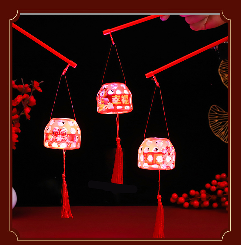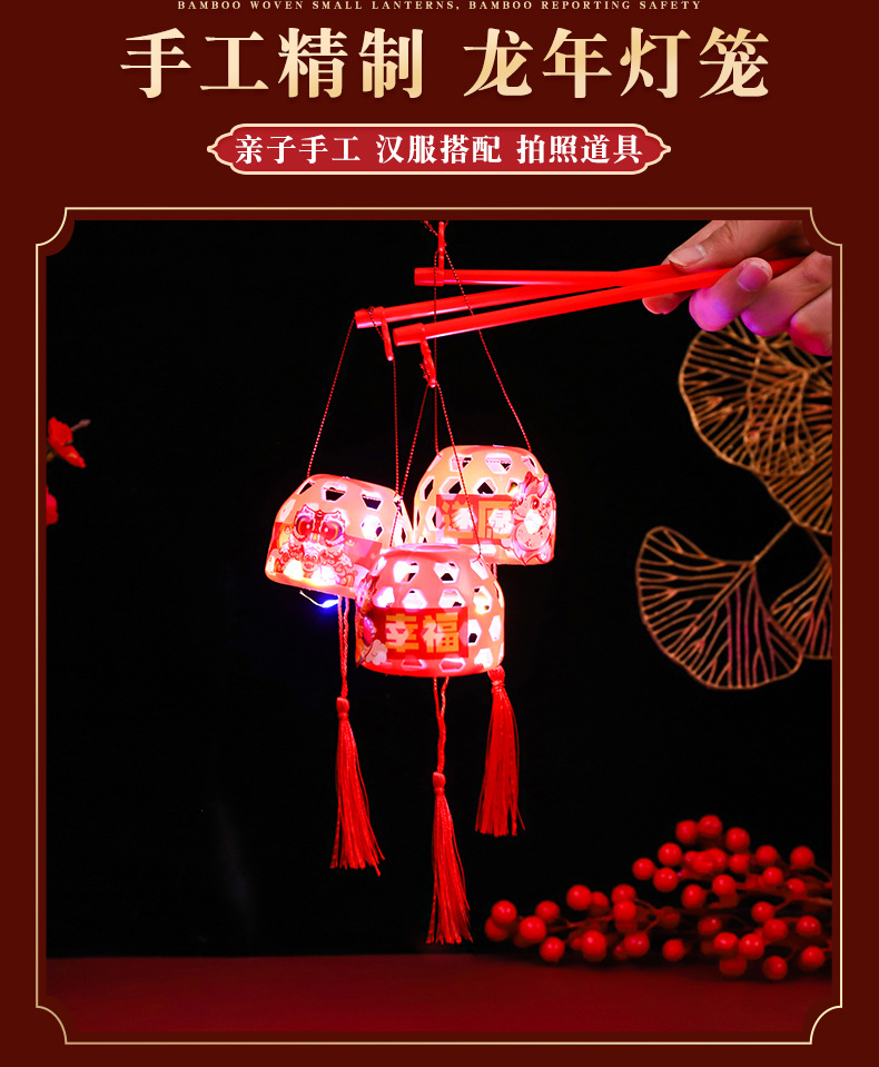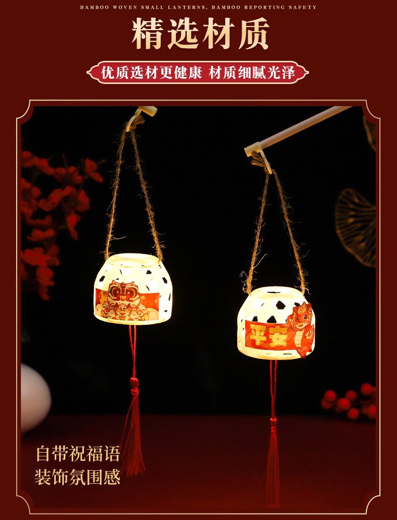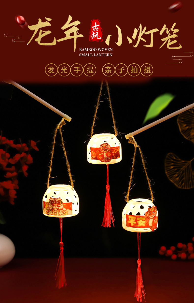 新款发光竹编灯笼迷你古风diy节庆儿童手提花灯五一摆摊玩具批发