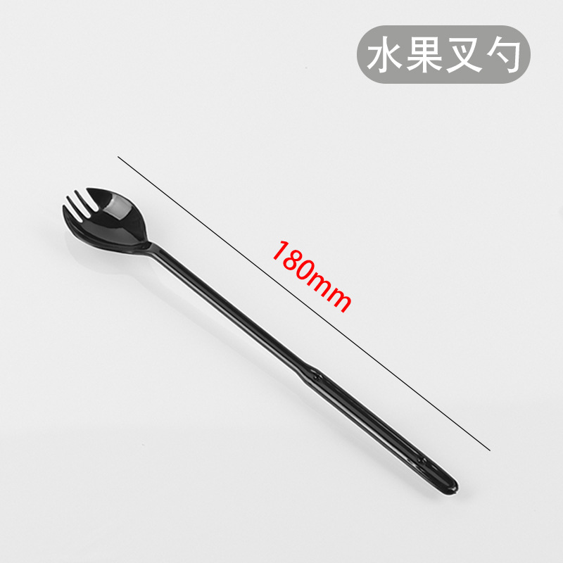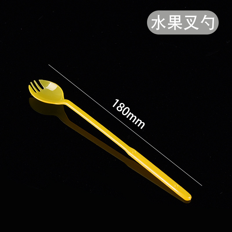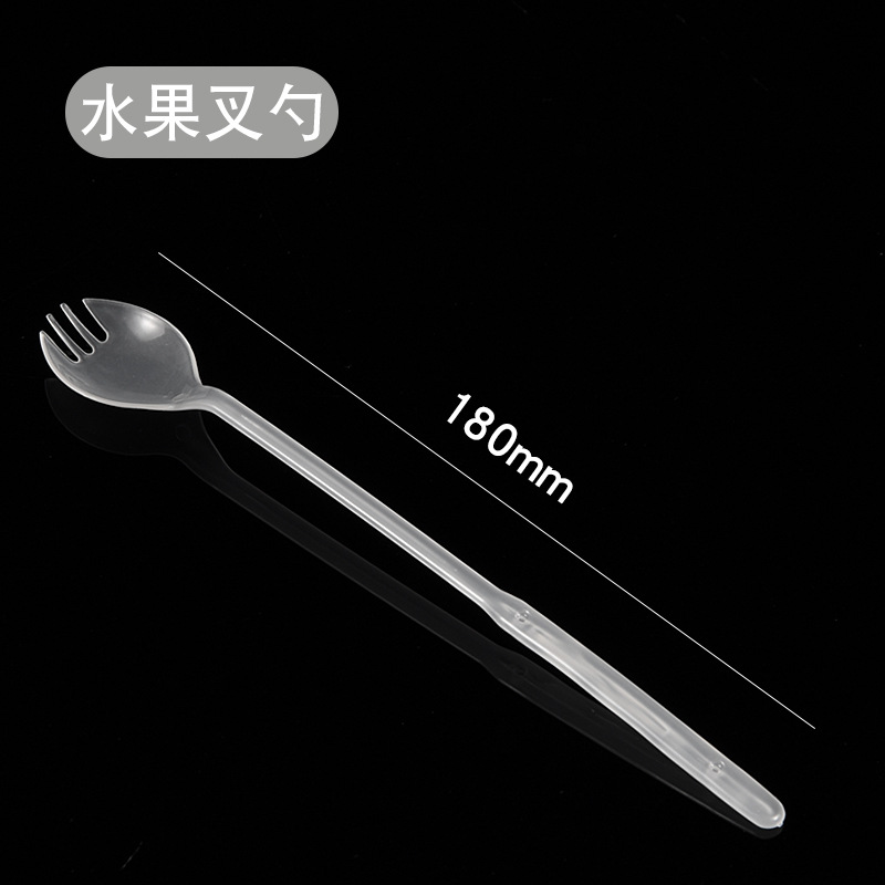 铭星一次性塑料加厚大叉长柄甜品奶茶外卖打包餐具圆头汤羹勺子
