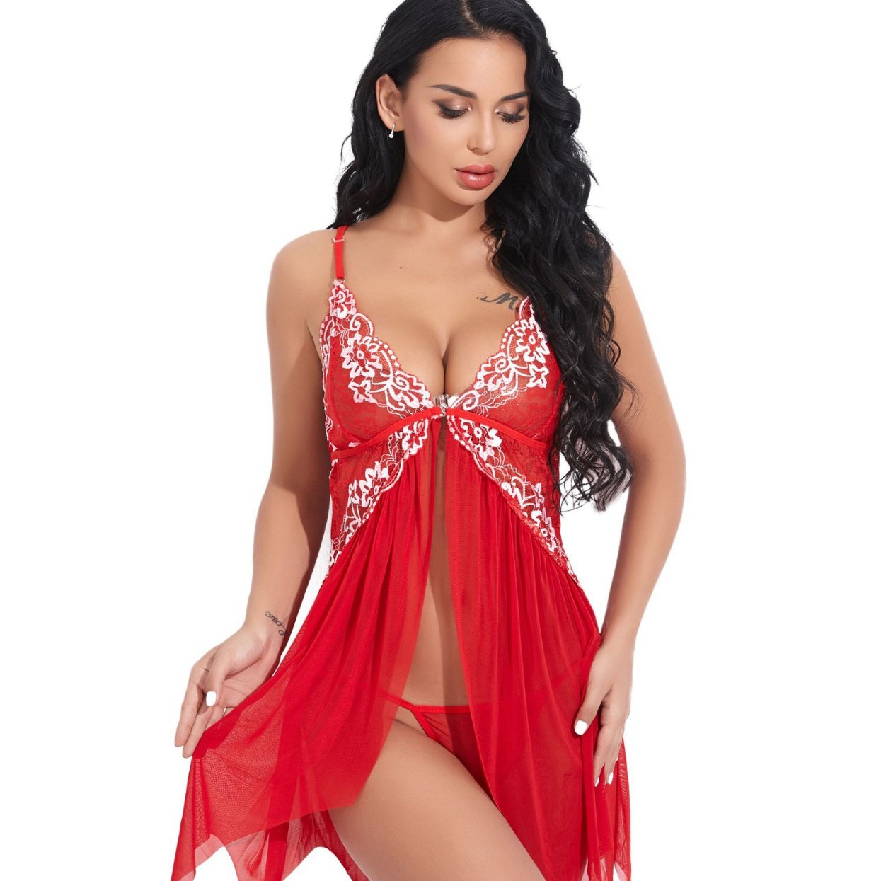 跨境热销 新款 欧美爆款蕾丝花边半透明网纱情趣吊带裙 厂家直销