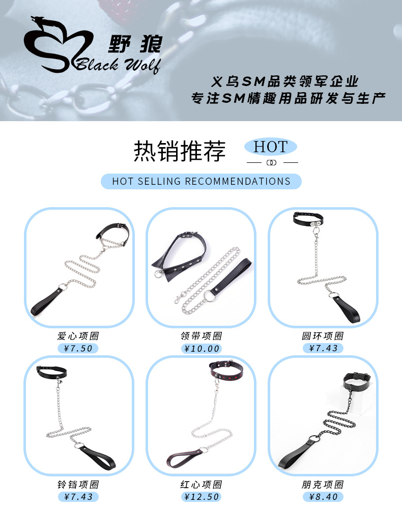 sm道具黑色皮革情趣项圈 女性调教牵引链铃铛项圈 sm情趣用品代发