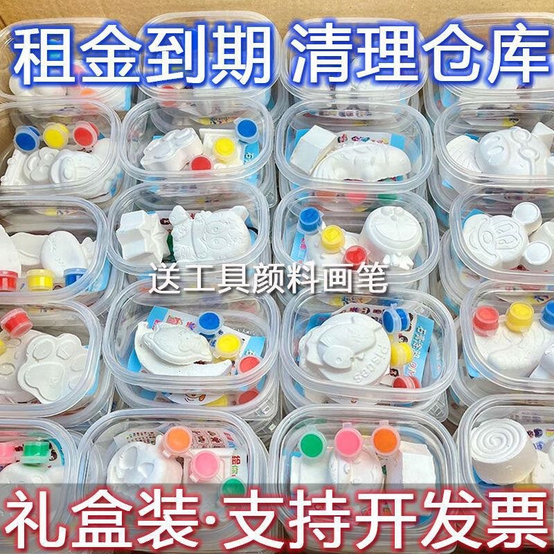 石膏娃娃颜料全套摆摊带调色盘白胚石豪hellokitty手提袋白胚上色