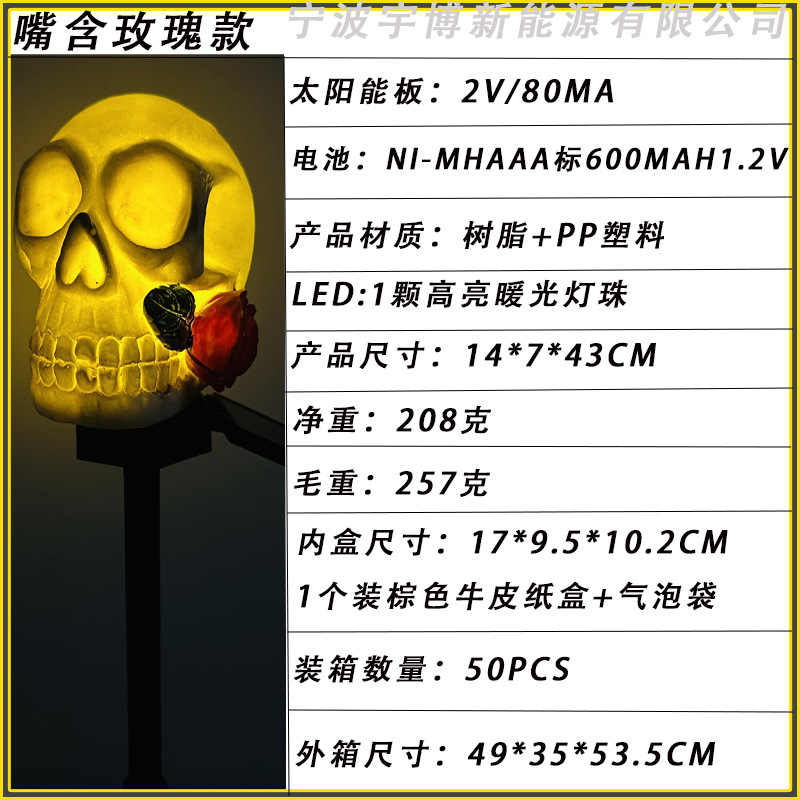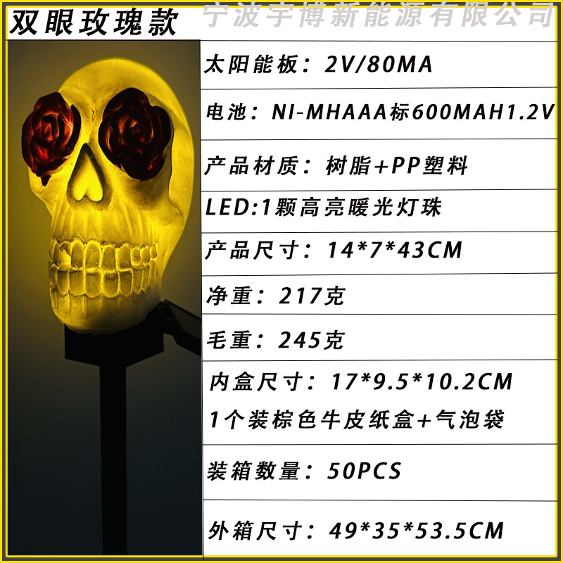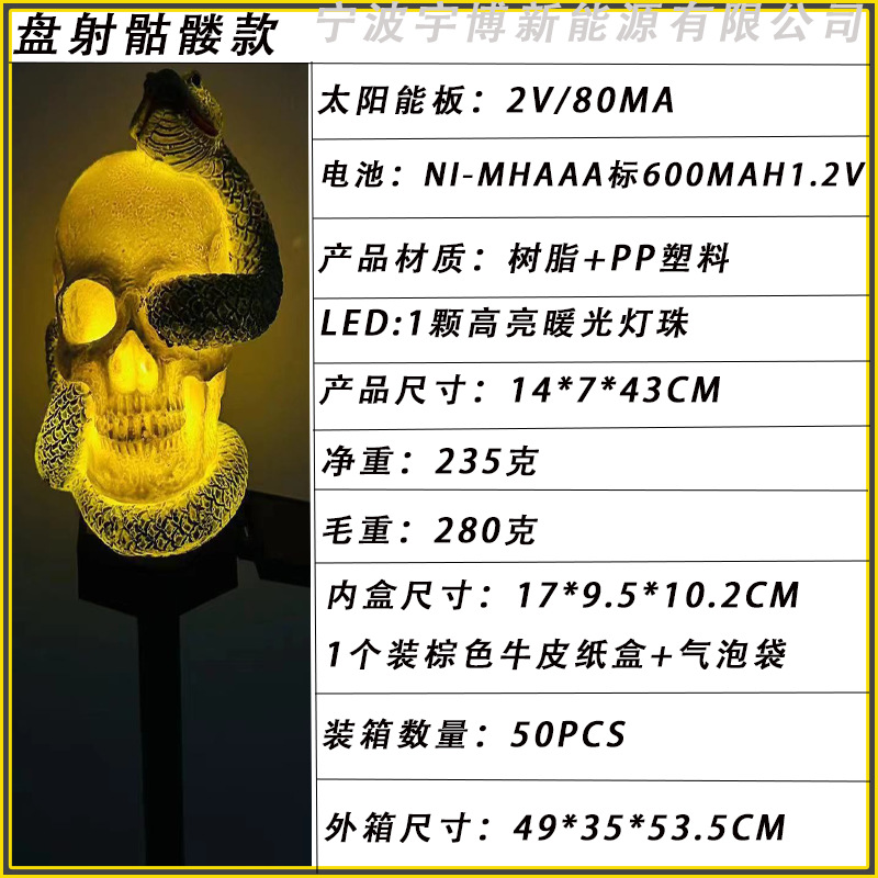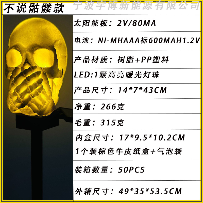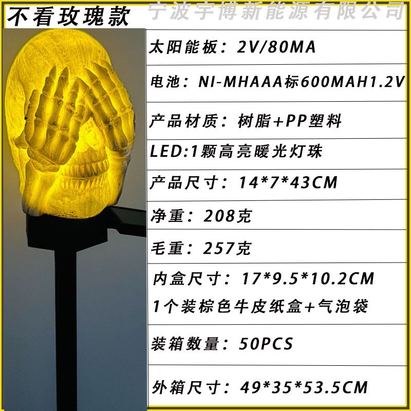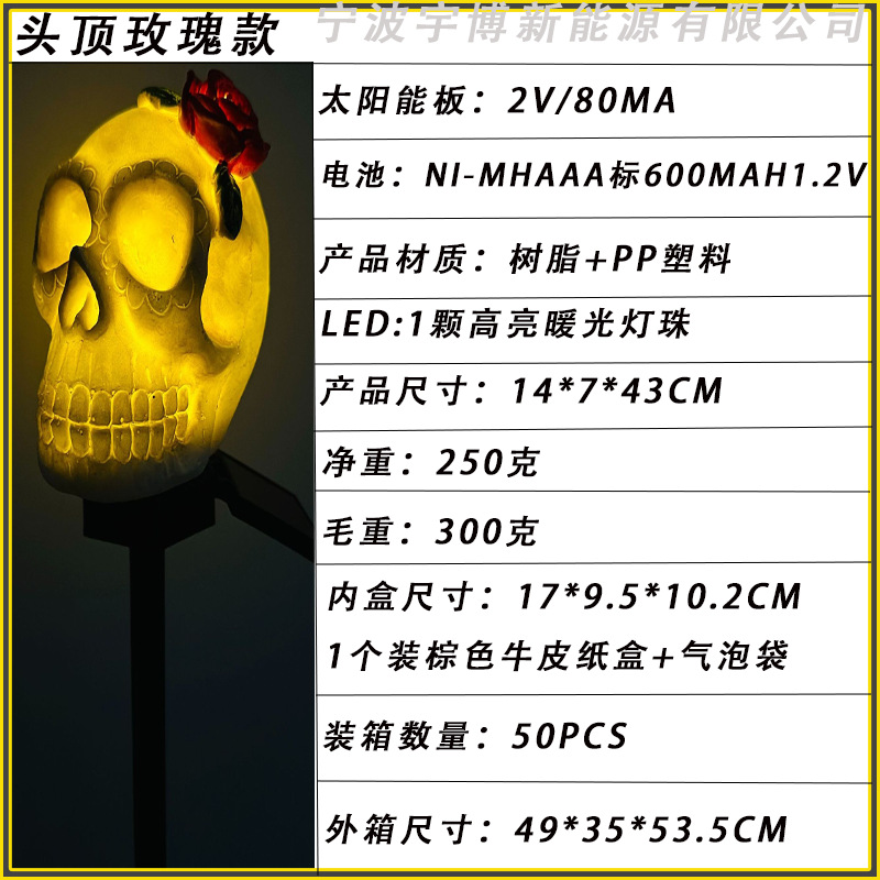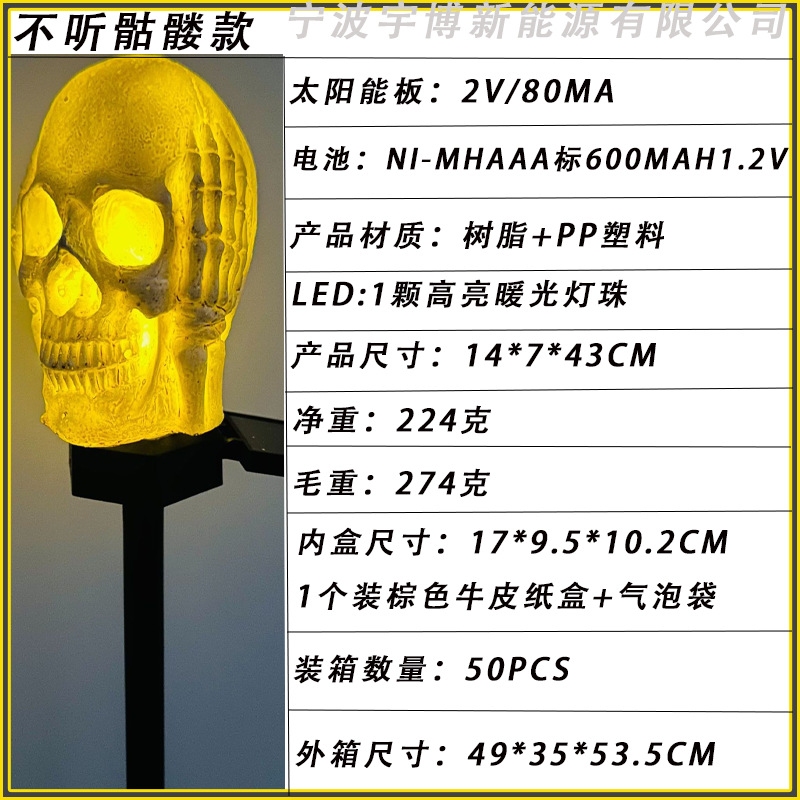 万圣节灯太阳能灯批发树脂灯骷髅头地插灯摆件发光装饰亚马逊道具