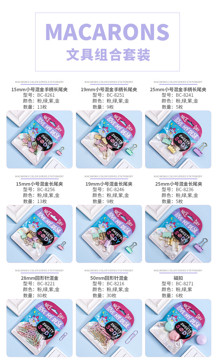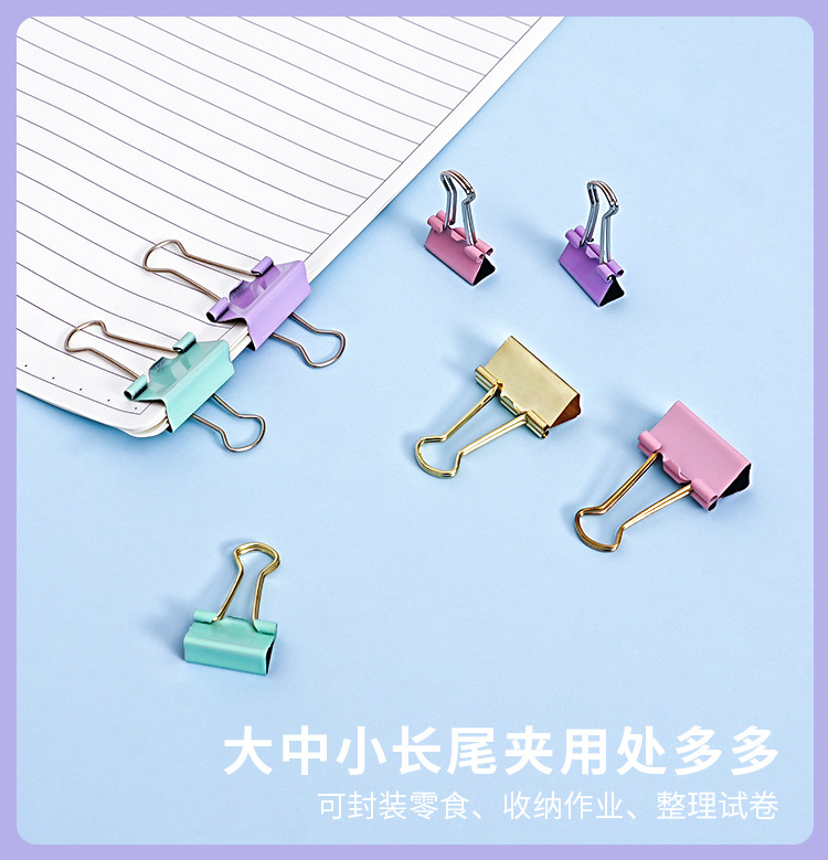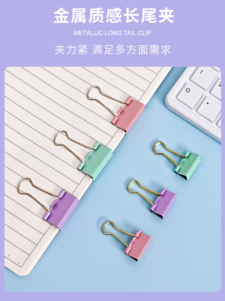 跨境亚马逊彩色长尾夹套装燕尾夹圆头夹办公用创意文具套装组合