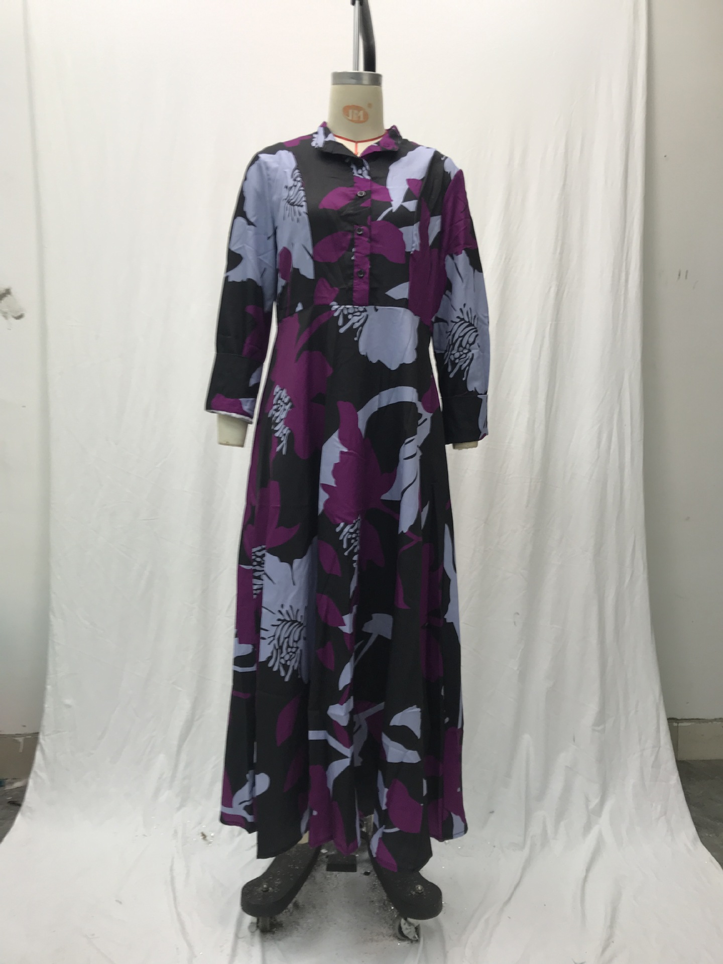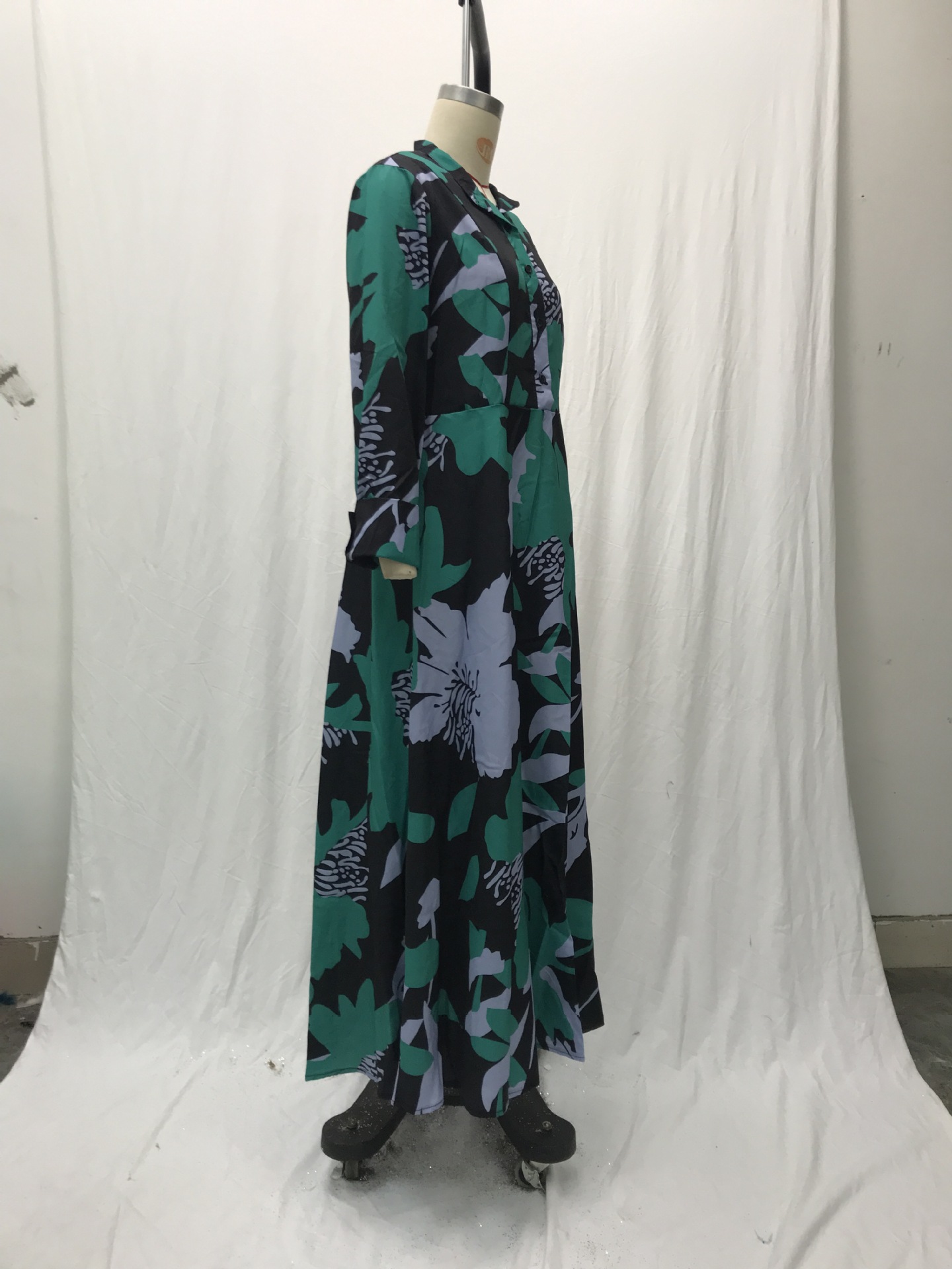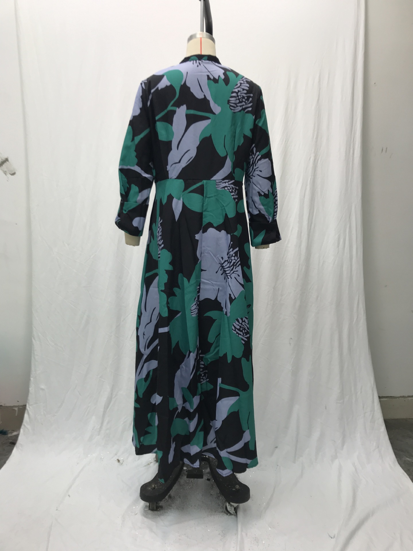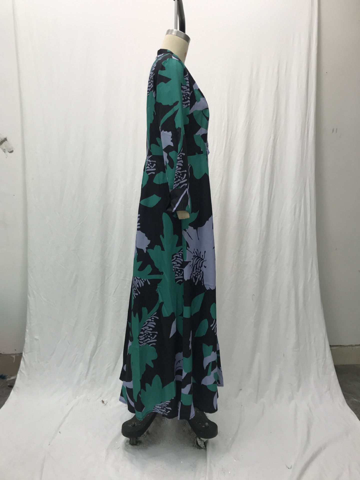 2025新款女装 亚马逊欧美连衣裙A字摆四面弹布料款数码印花连衣裙