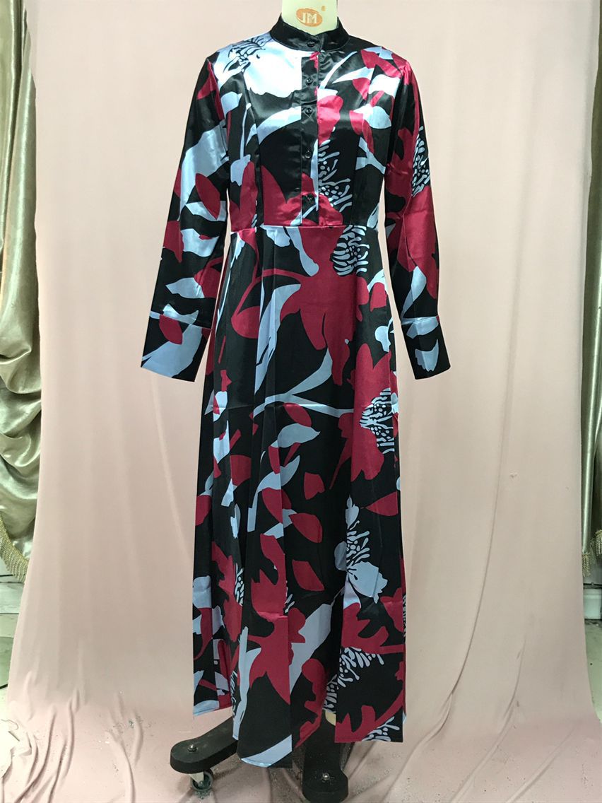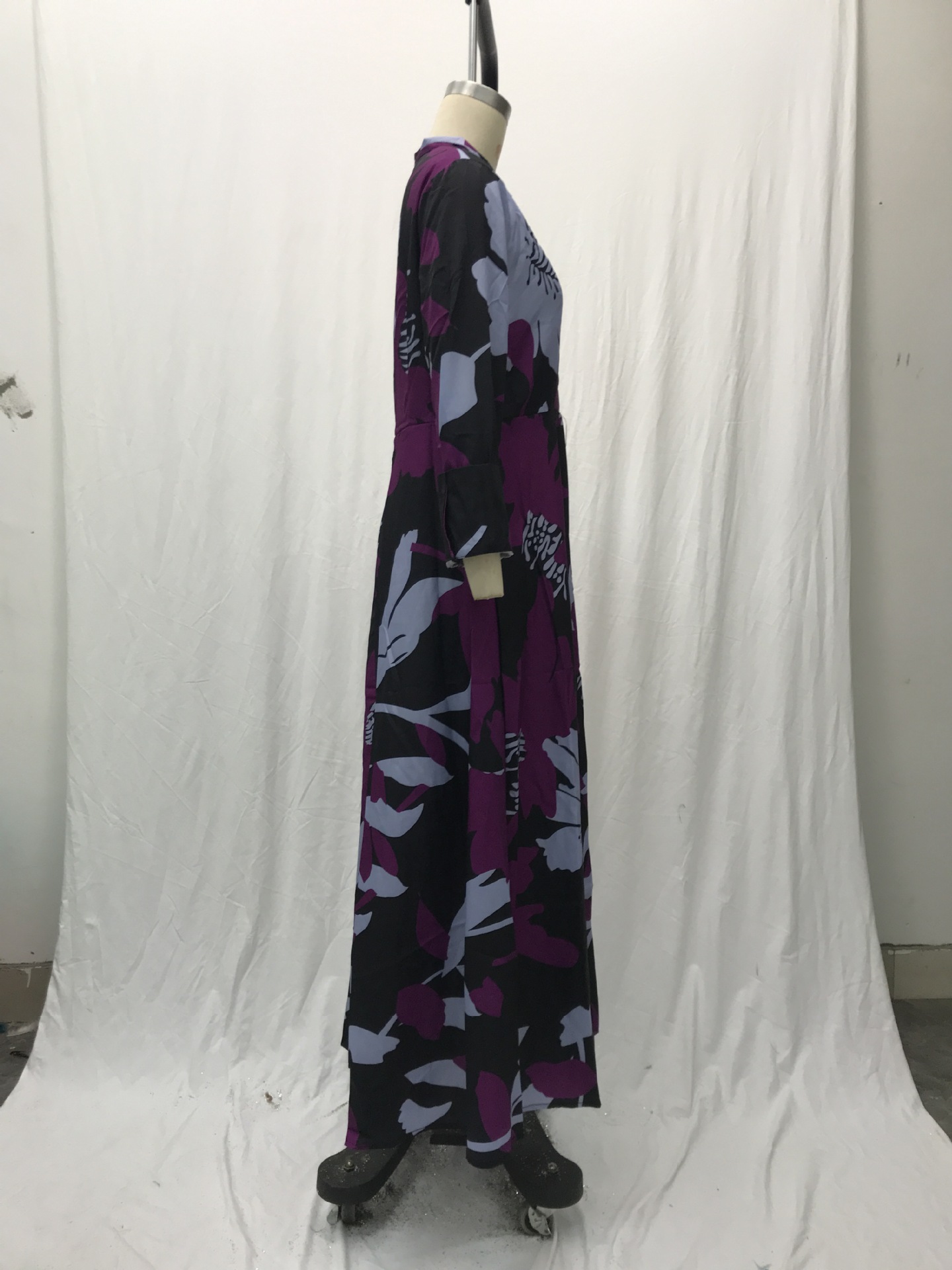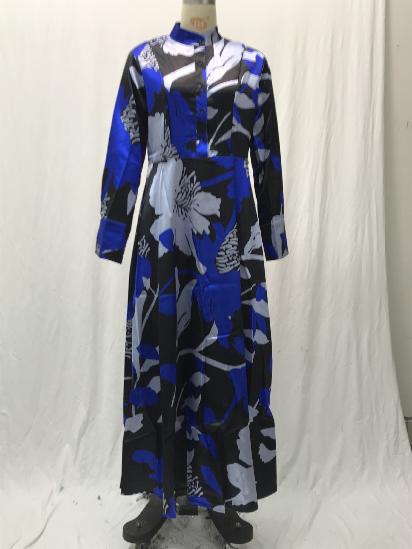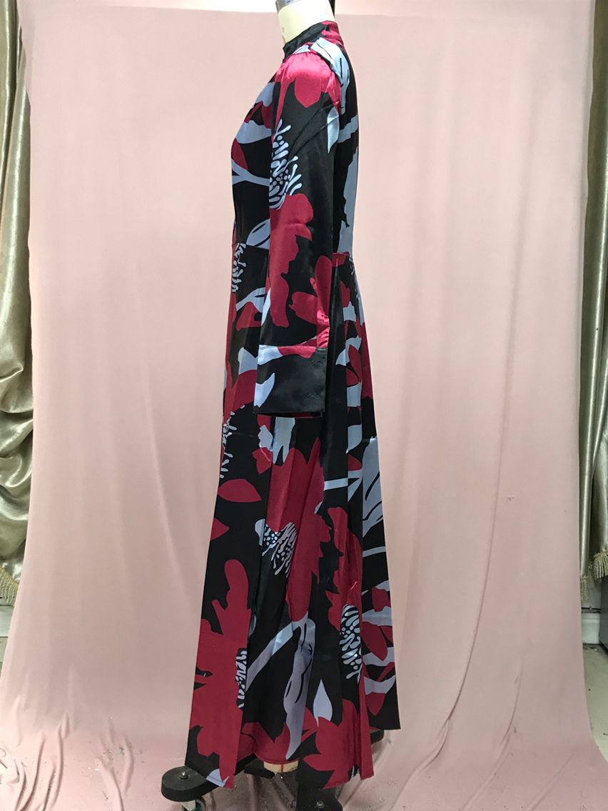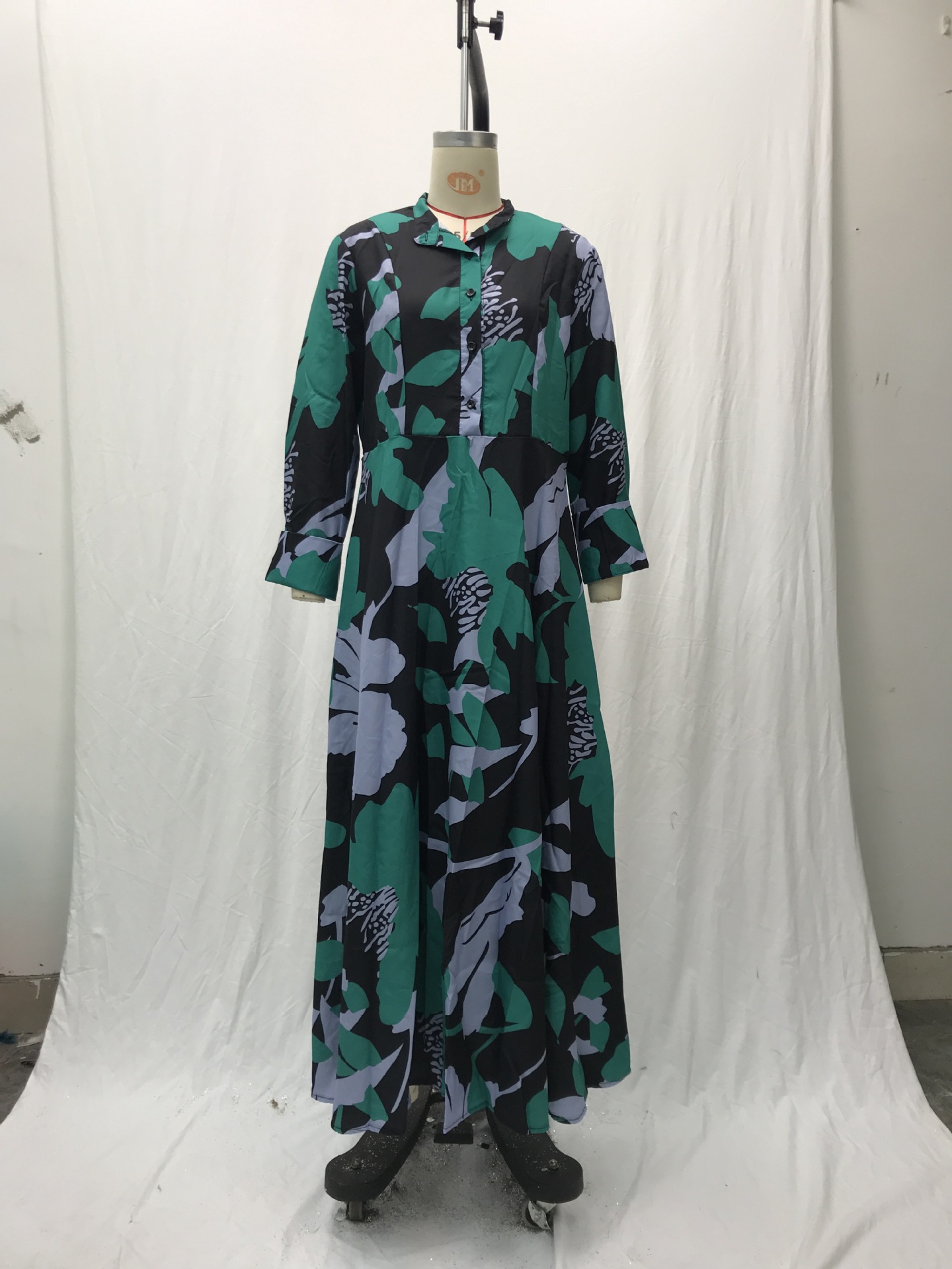 2025新款女装 亚马逊欧美连衣裙A字摆四面弹布料款数码印花连衣裙