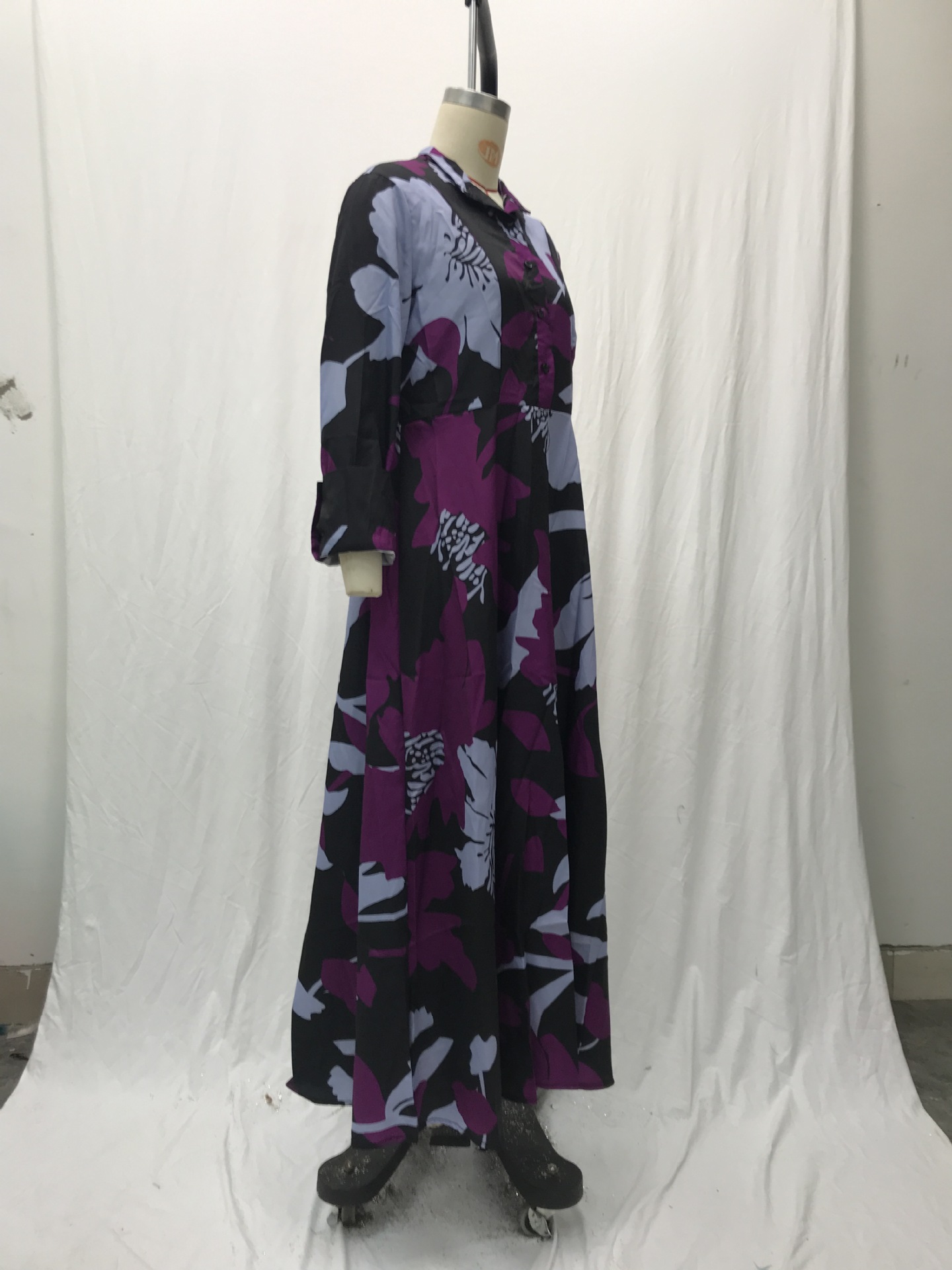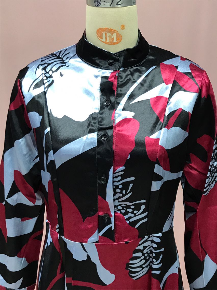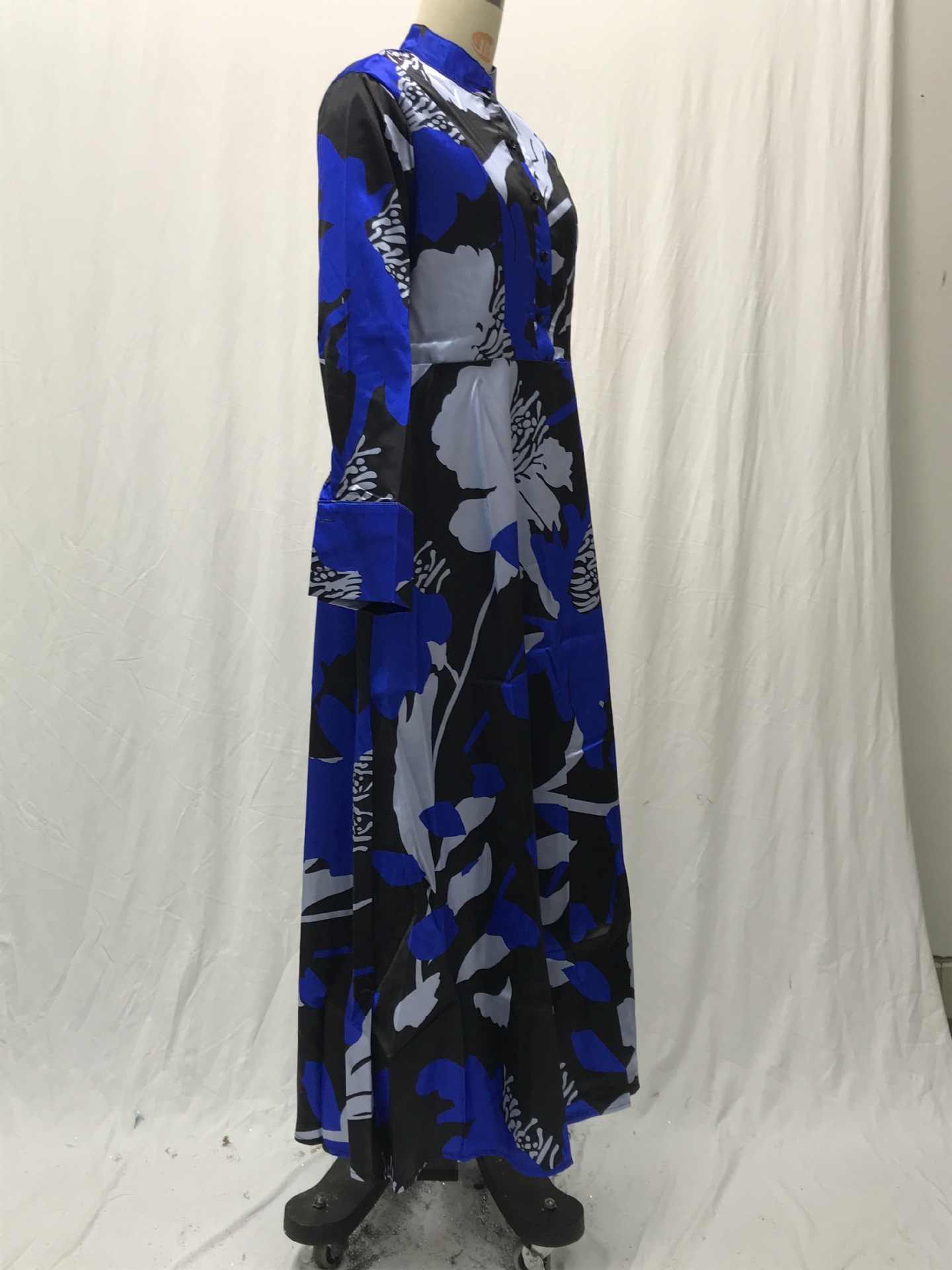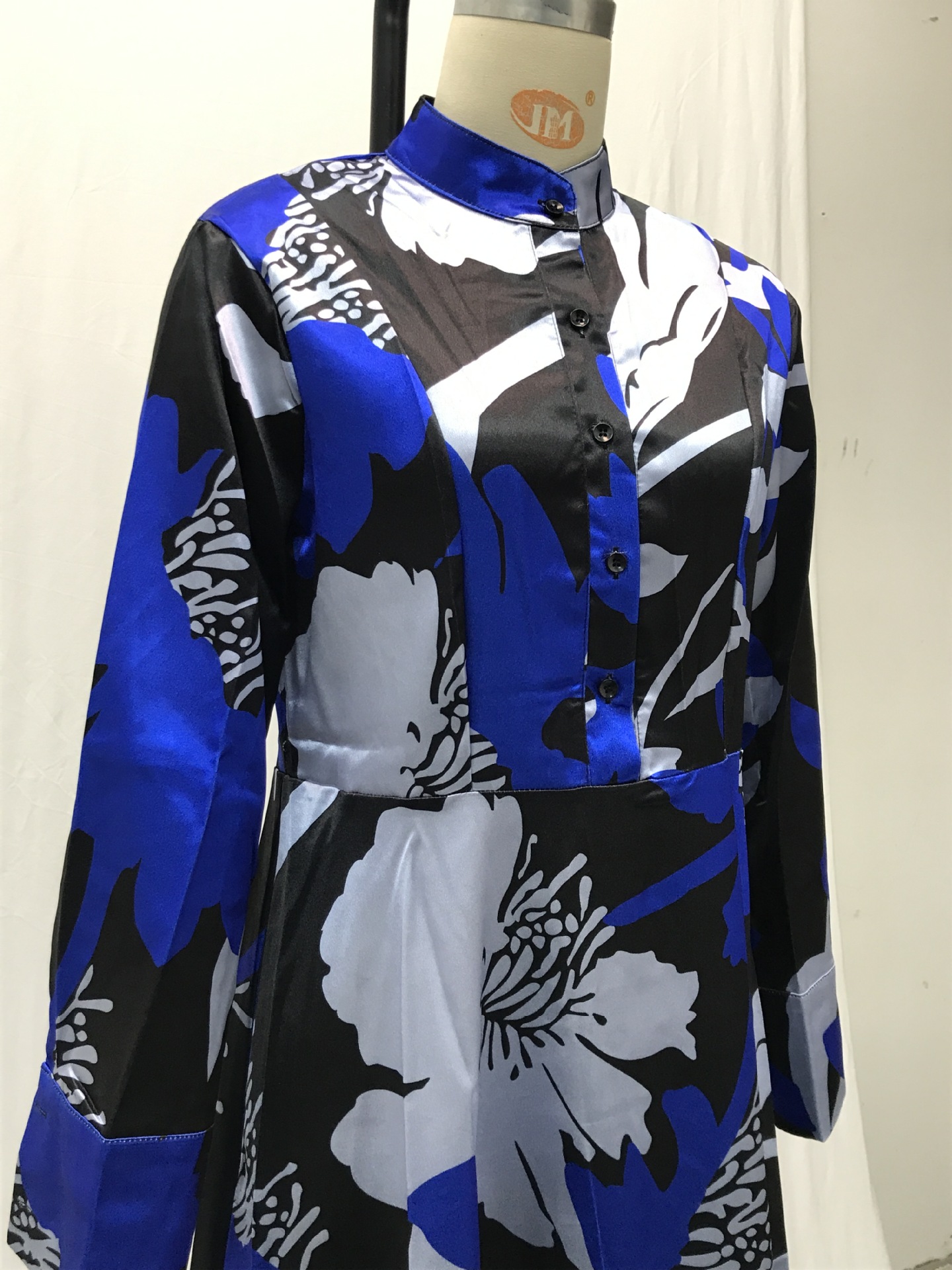 2025新款女装 亚马逊欧美连衣裙A字摆四面弹布料款数码印花连衣裙