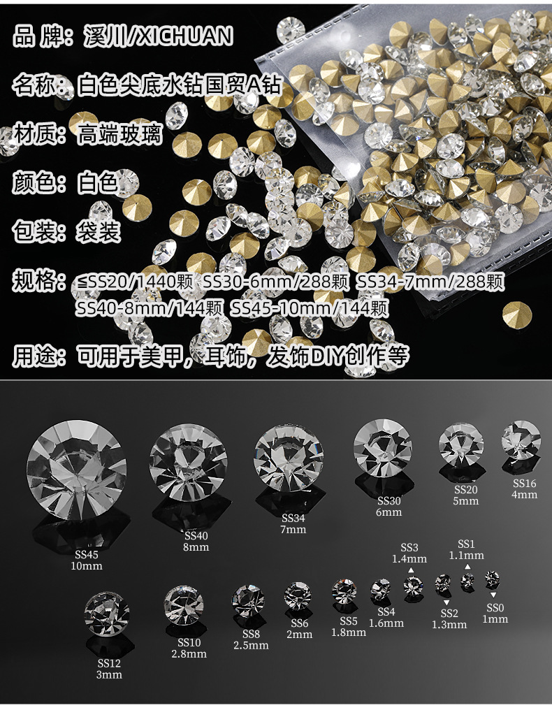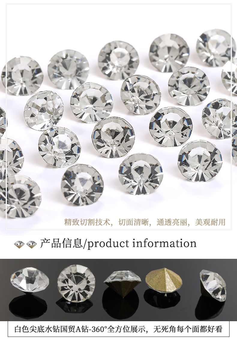 国贸A钻尖底白色水钻仿捷克超闪美甲钻服装水晶钻配件DIY手机壳钻