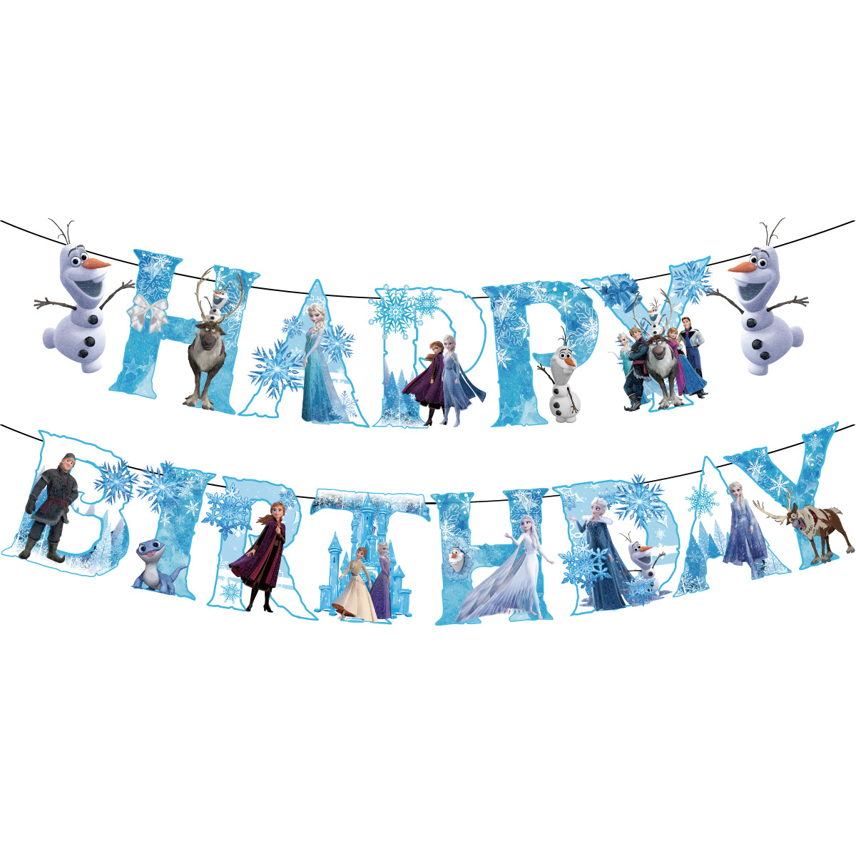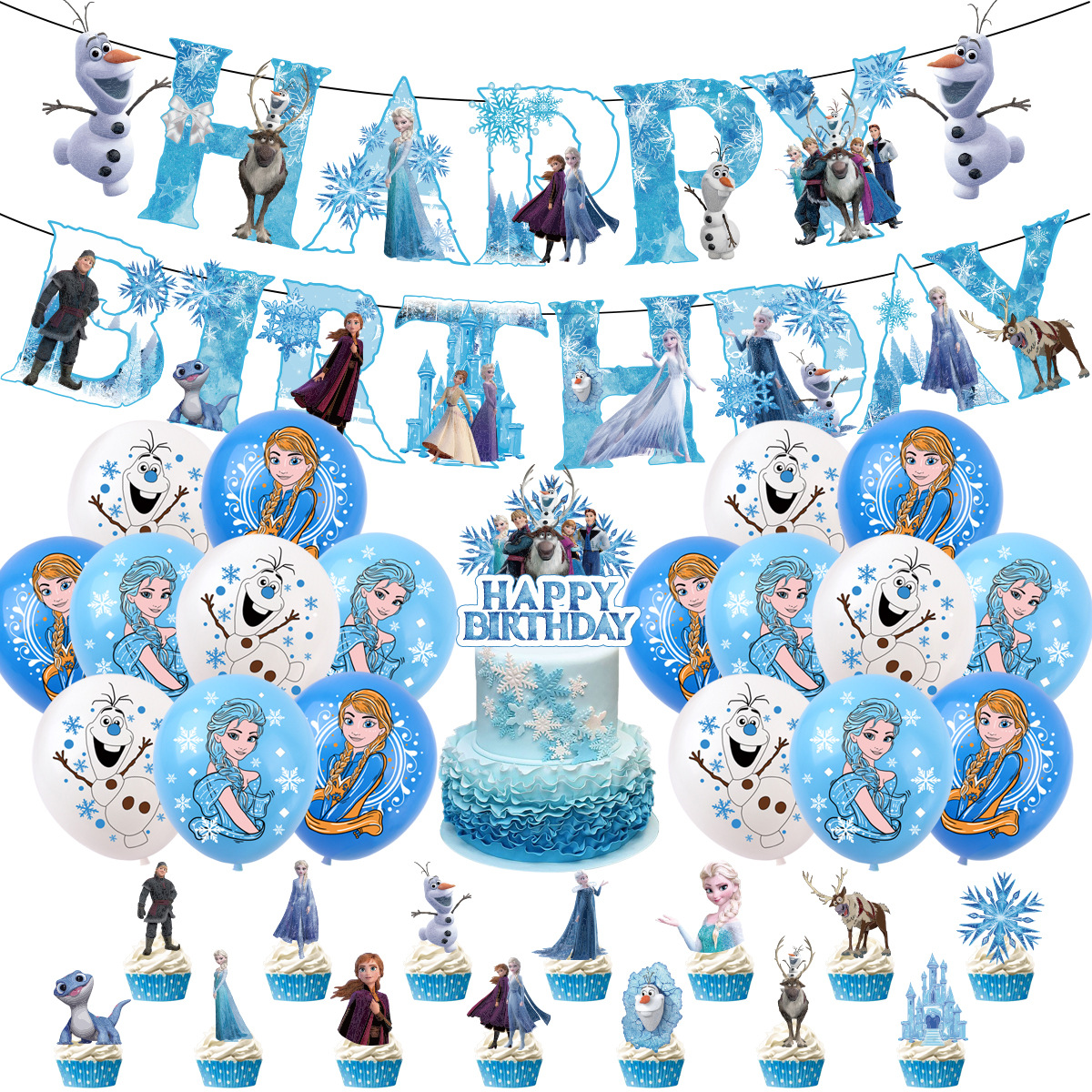 冰雪奇缘主题生日派对用品艾莎安娜公主拉旗气球蛋糕插装饰套装