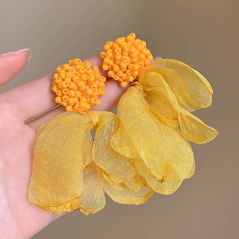 黄色系列花朵耳钉女小众独特气质耳环2025新款爆款高级感时尚耳饰