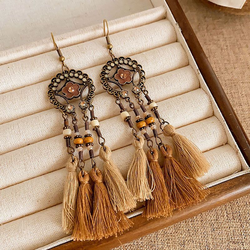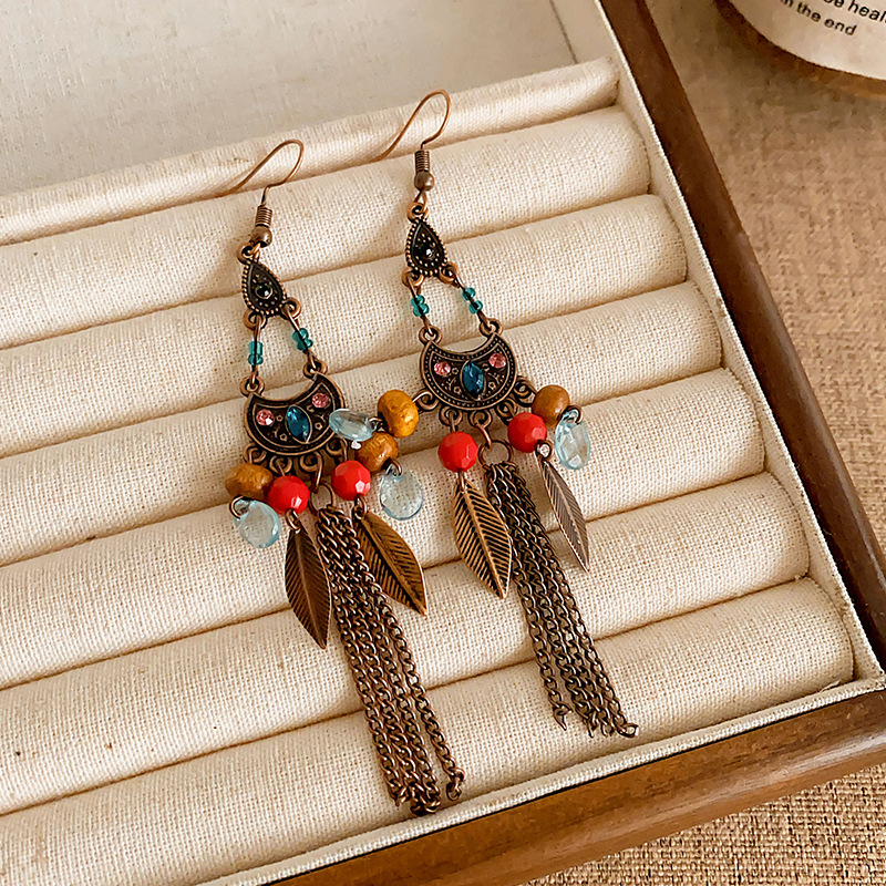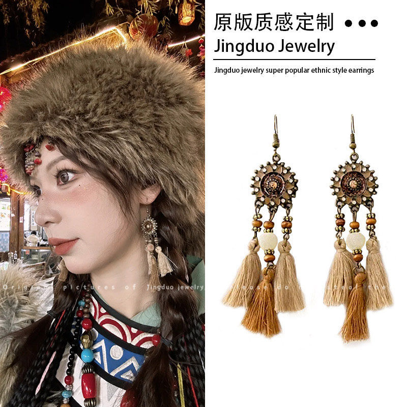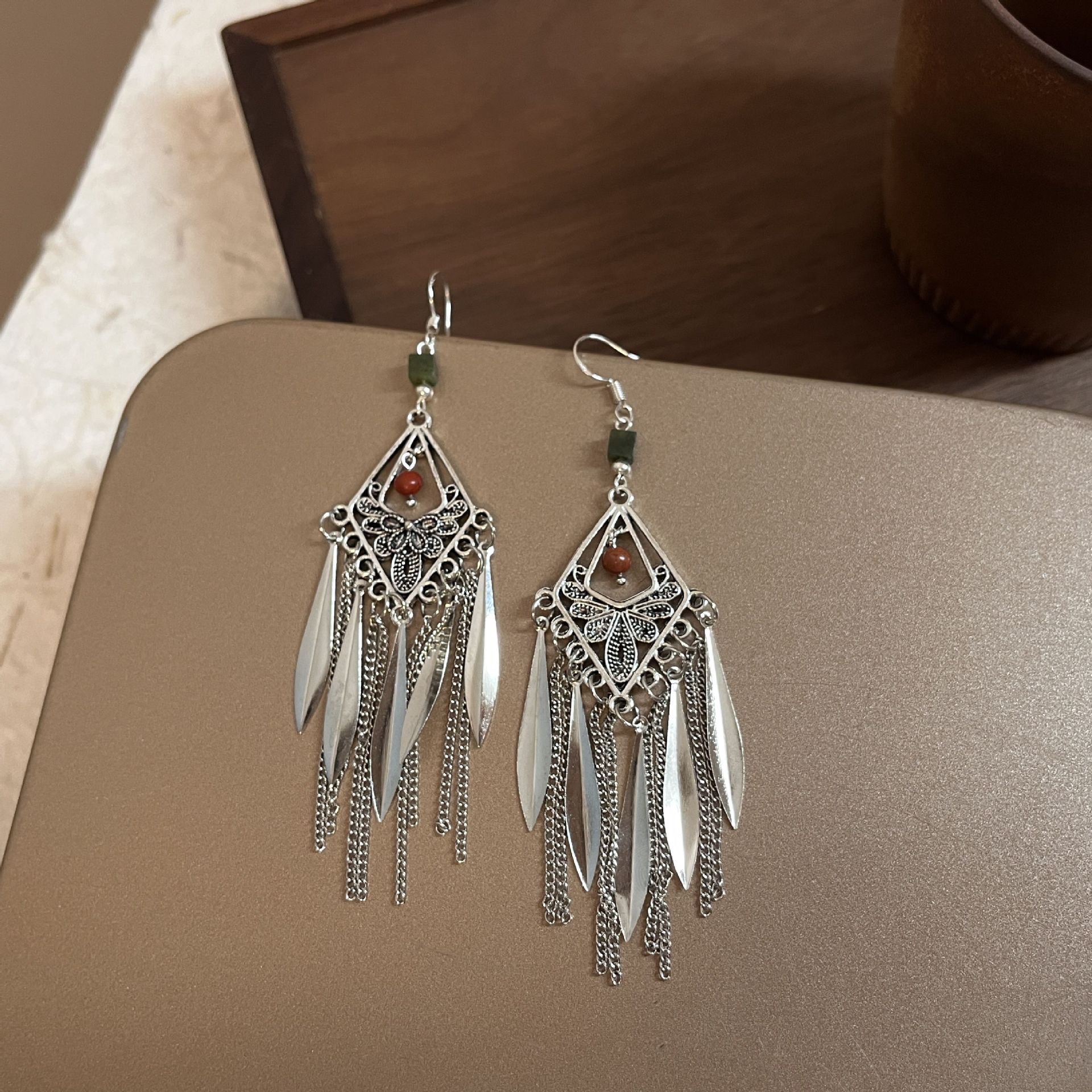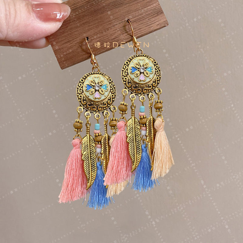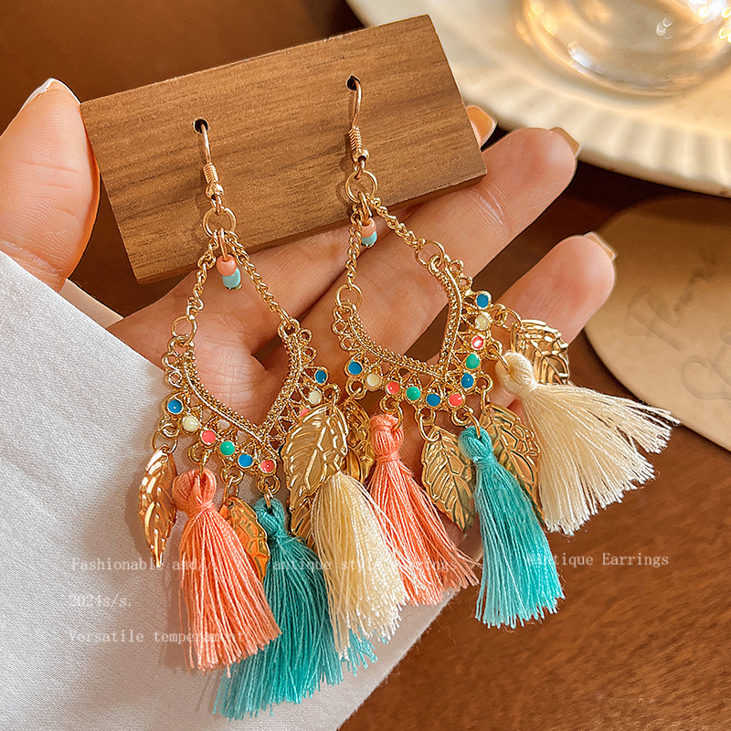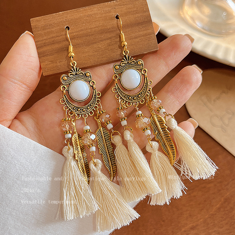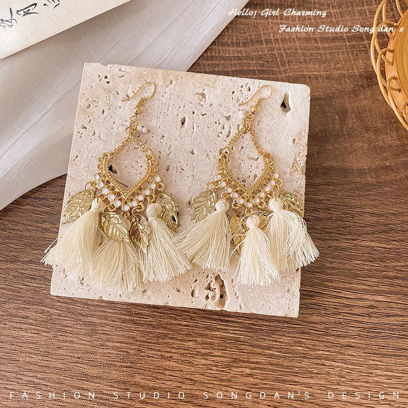 白鹿同款项链波西米亚流苏耳环2024年新款女高级感耳钉新中式耳饰
