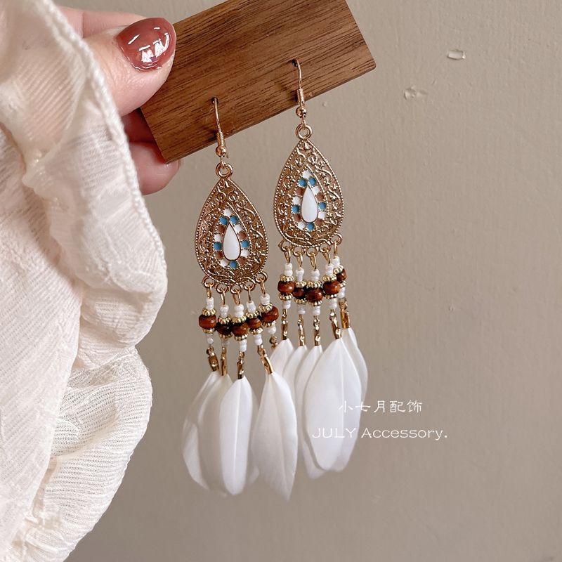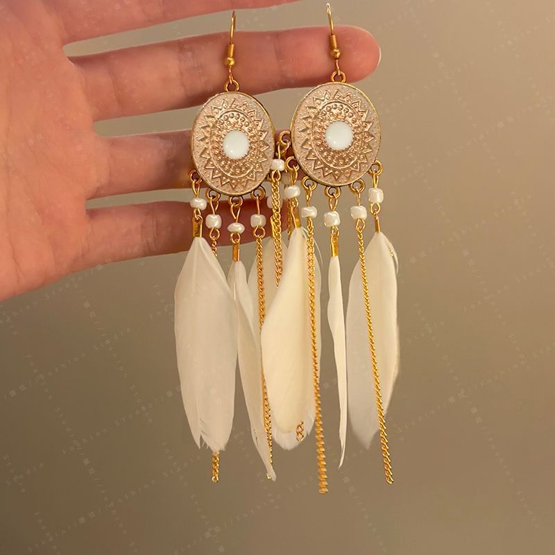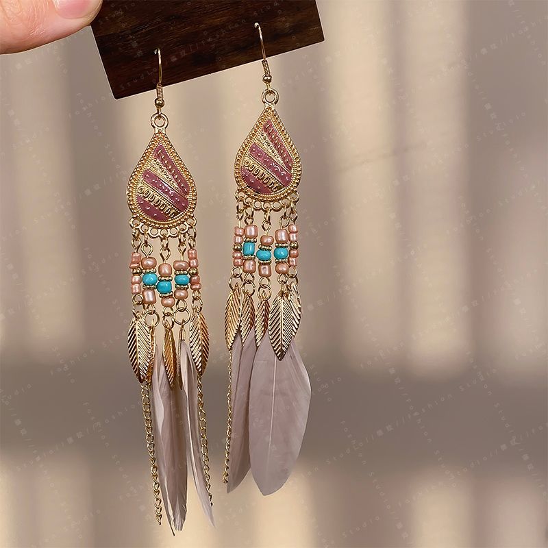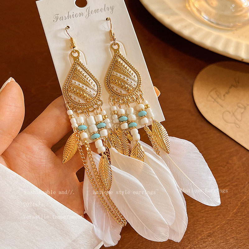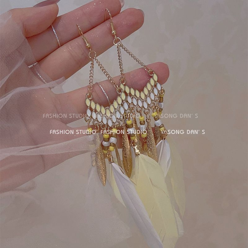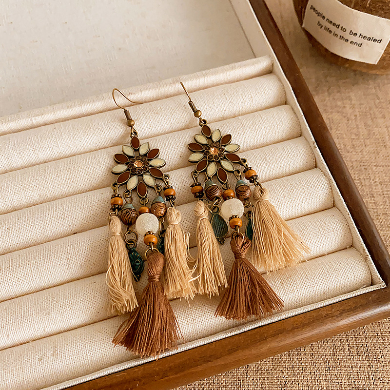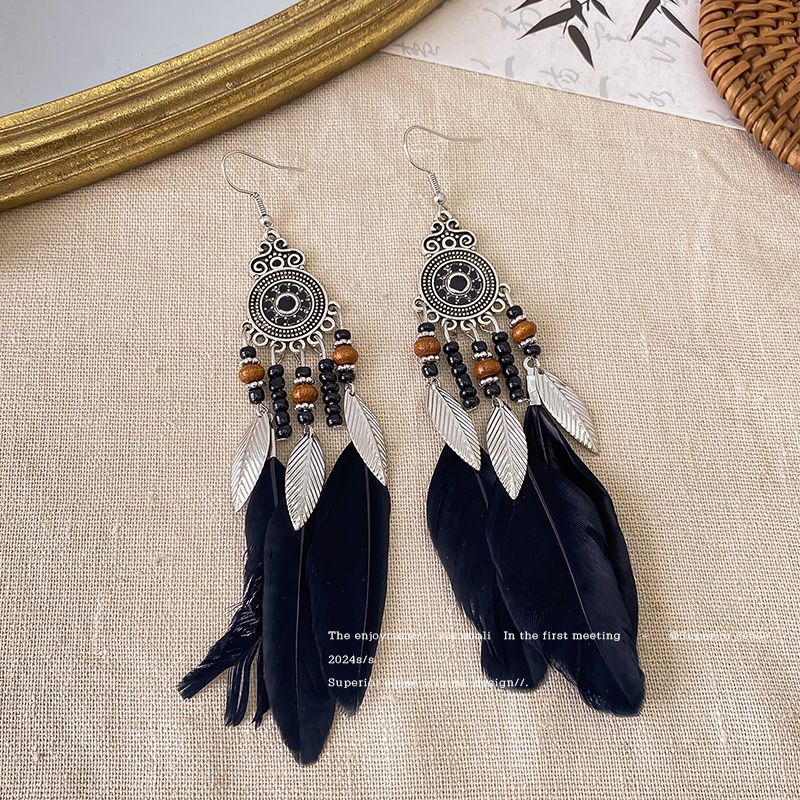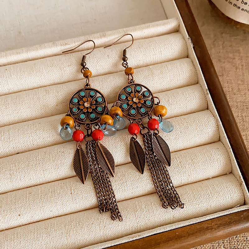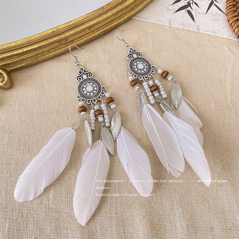 白鹿同款项链波西米亚流苏耳环2024年新款女高级感耳钉新中式耳饰