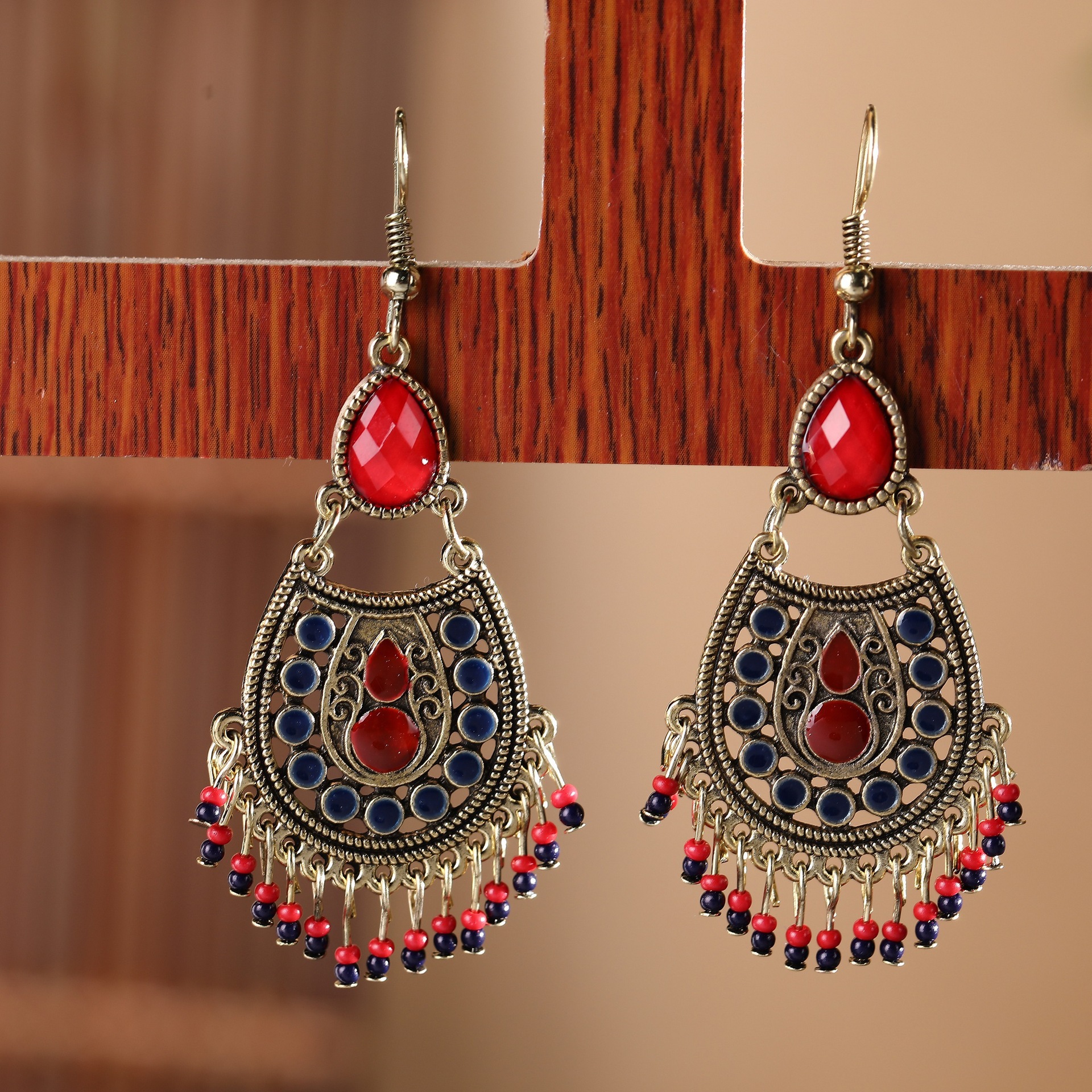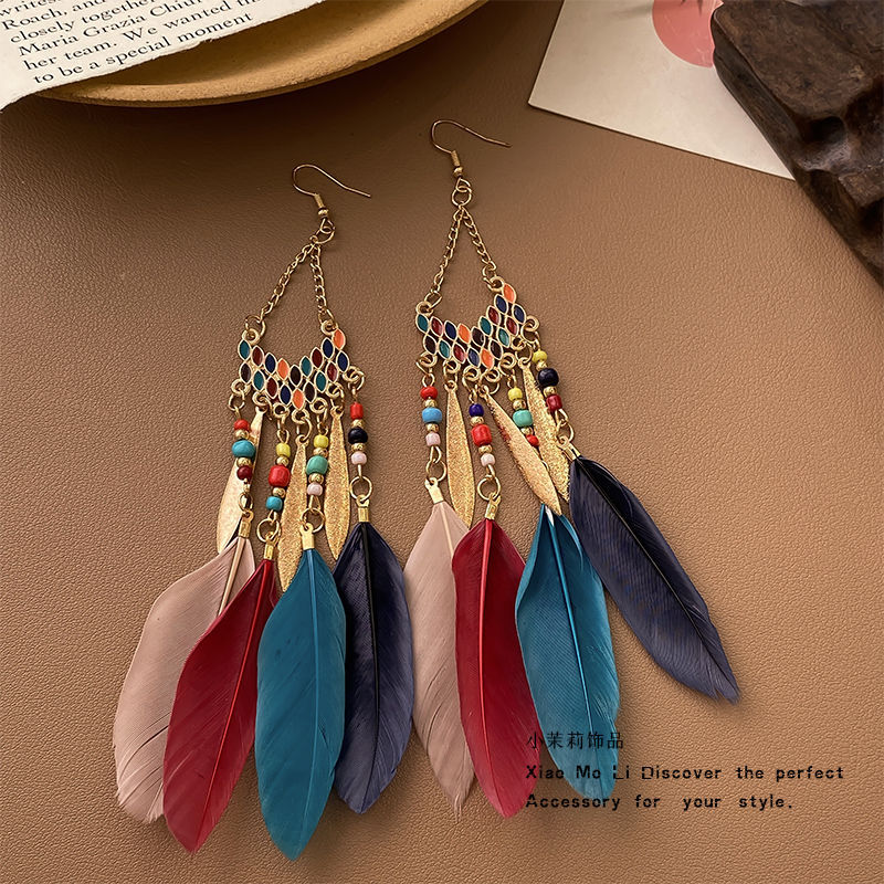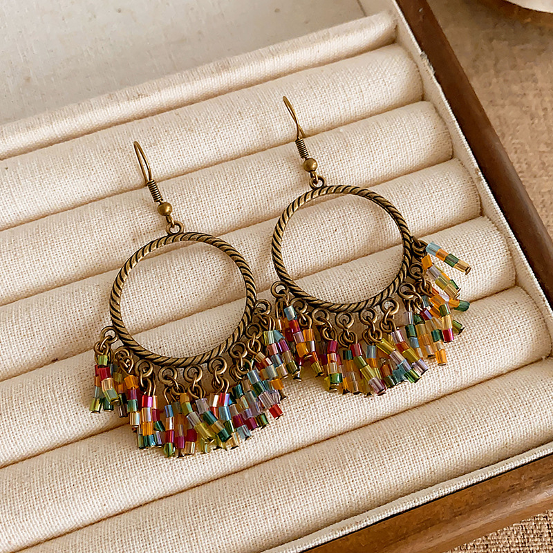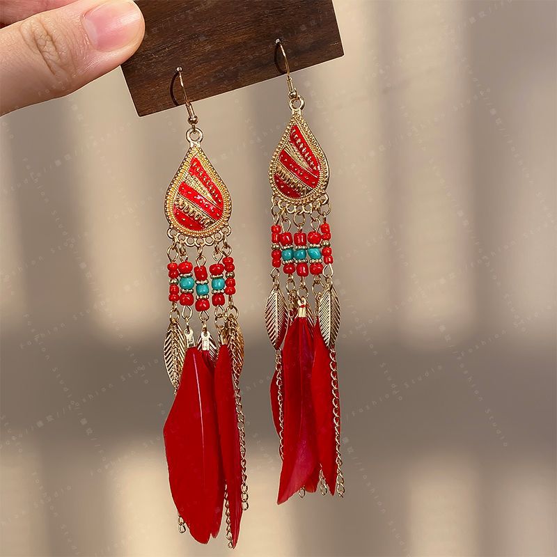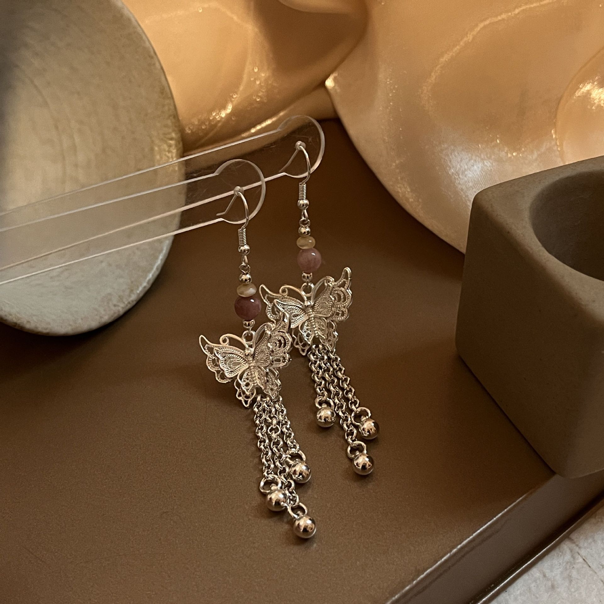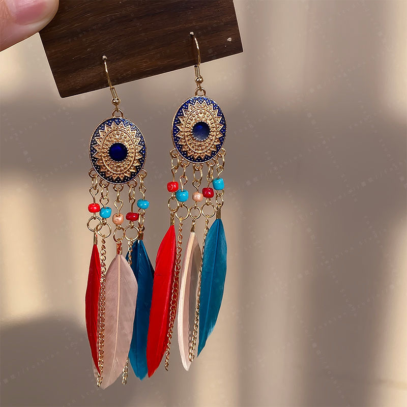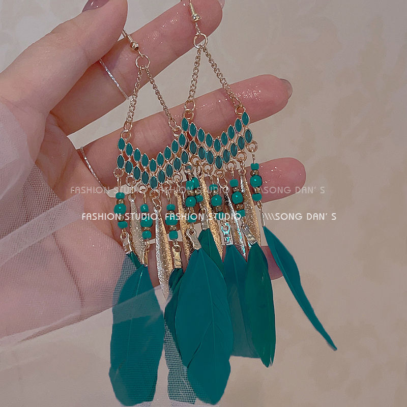 白鹿同款项链波西米亚流苏耳环2024年新款女高级感耳钉新中式耳饰