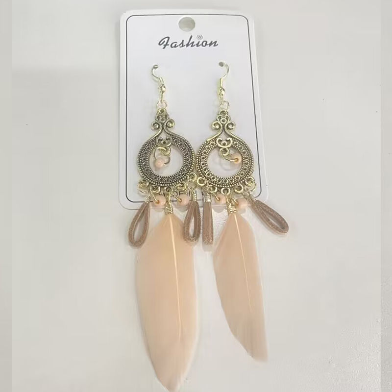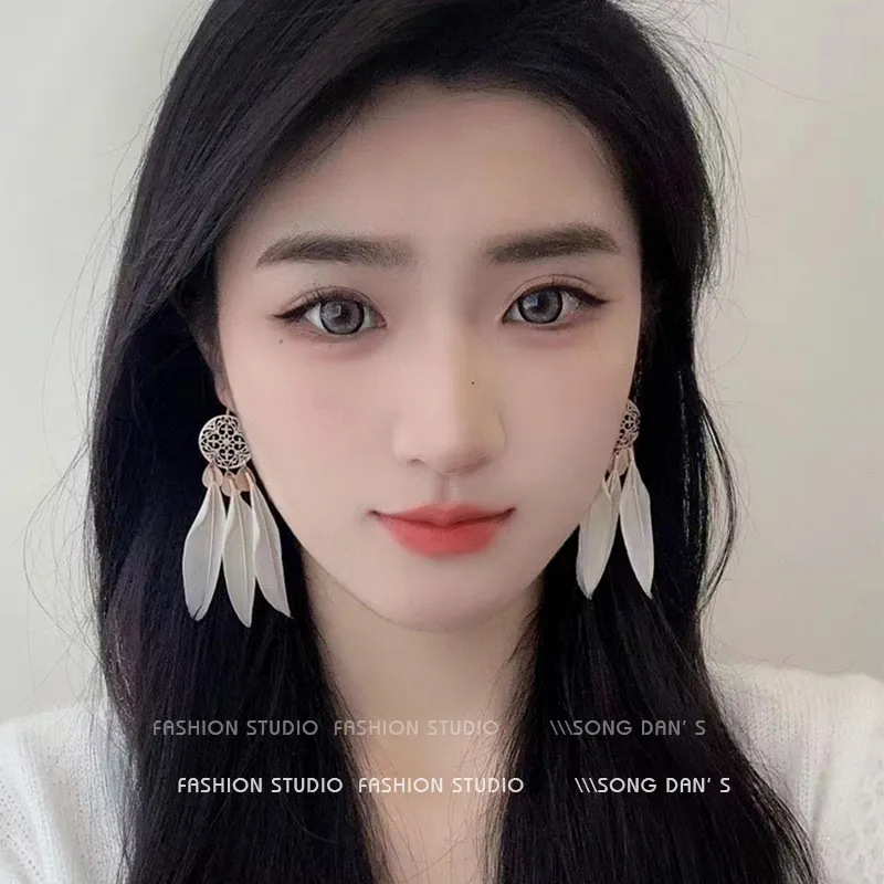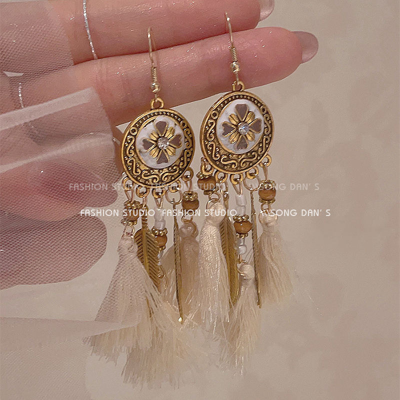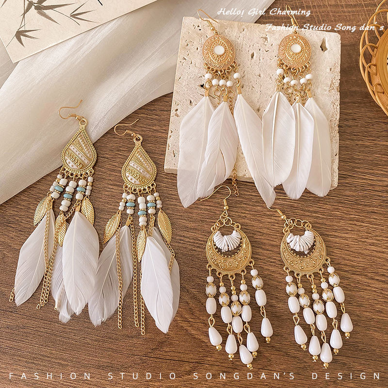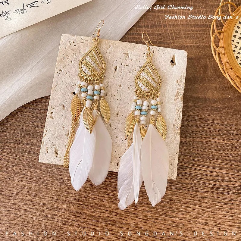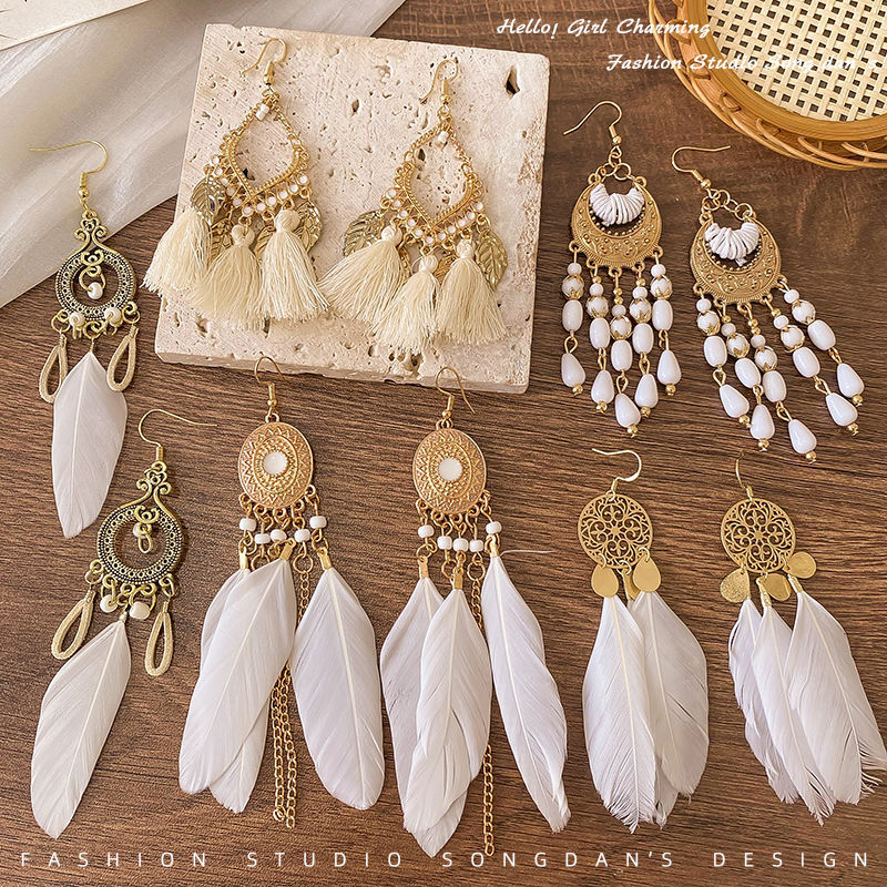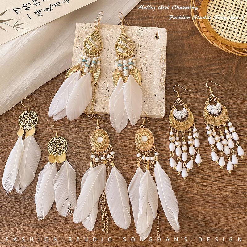 波西米亚民族风羽毛流苏耳环女复古国风配饰耳坠独特小众耳钉耳饰