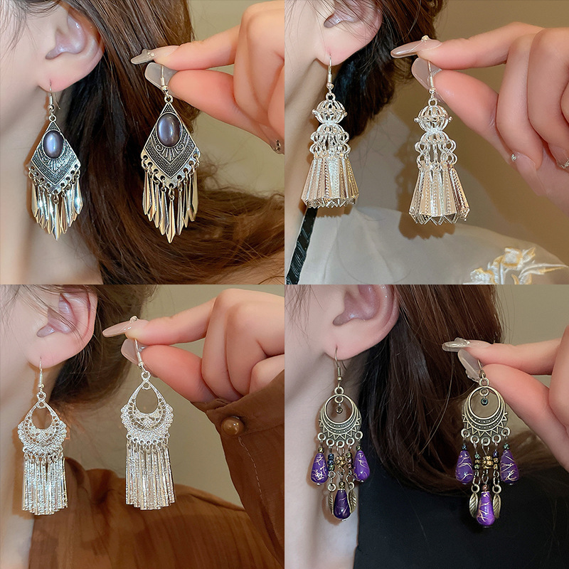 波西米亚复古流苏耳环时尚民族风气质耳钩小众高级感百搭耳饰批发