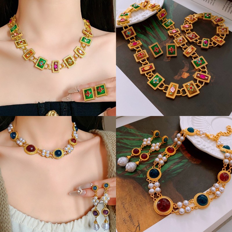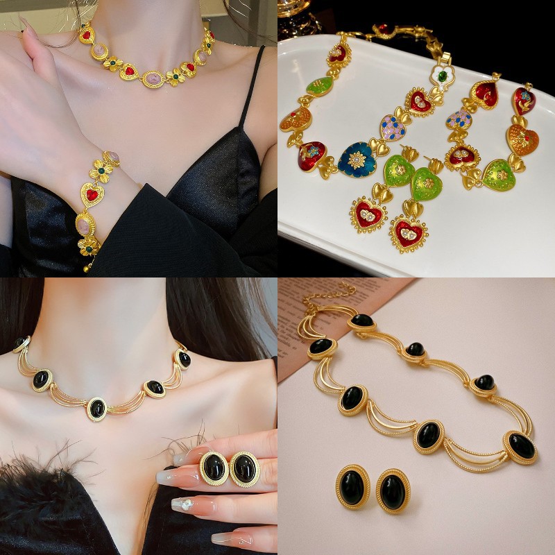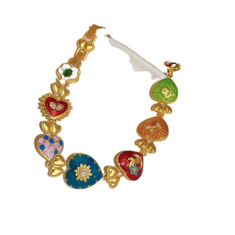 中古vintage爱心项链跨境复古宫廷风锁骨链轻奢高级感饰品批发女