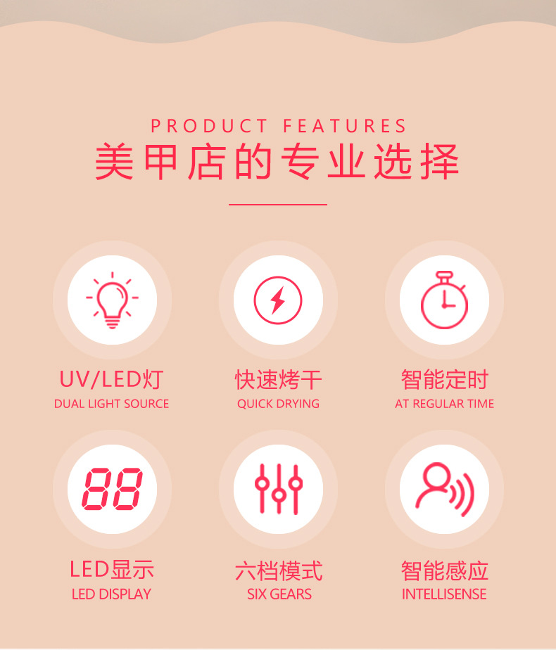 新款手枕美甲灯光疗机380W大功率速干美甲凝胶烤灯美甲店专用便携