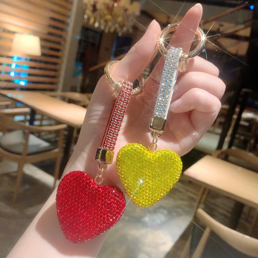 创意陶泥点钻满钻绳桃心钥匙扣爱心女包包挂件汽车钥匙扣挂件配件