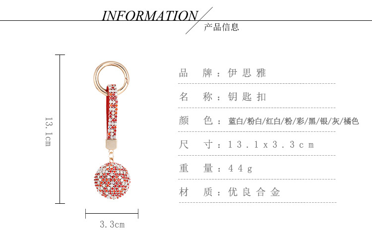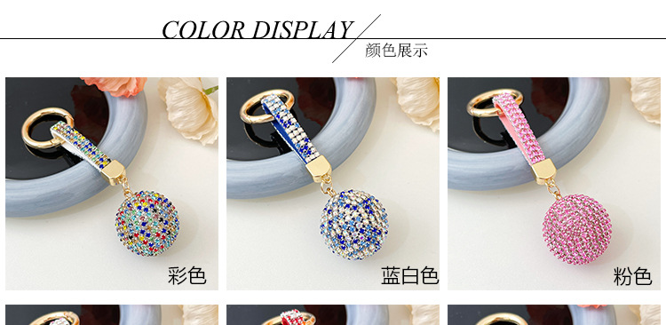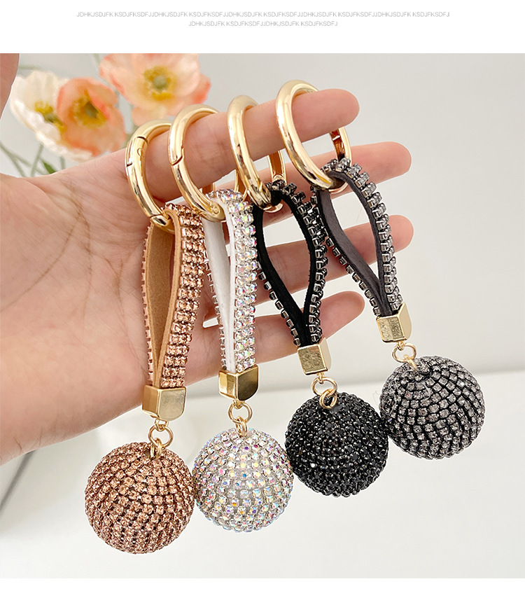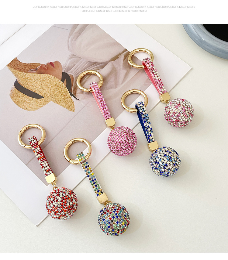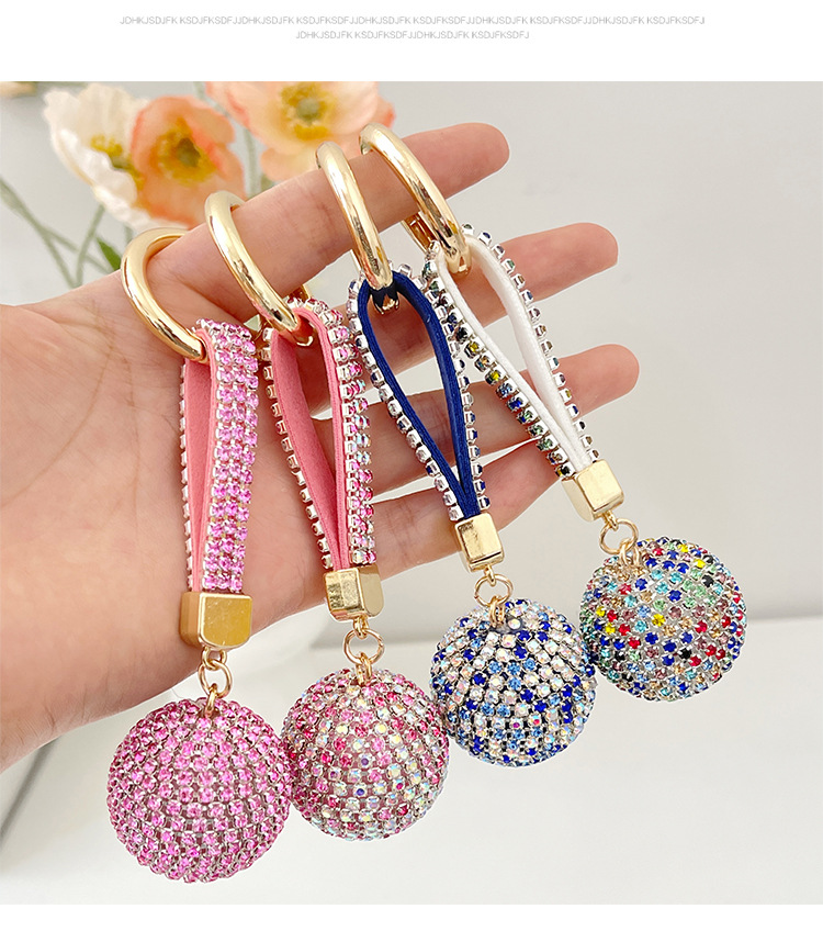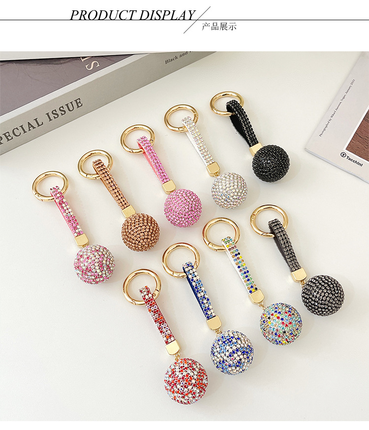 跨境爆款时尚镶满钻圆球钥匙扣高档水钻背包挂饰汽车钥匙挂件批发