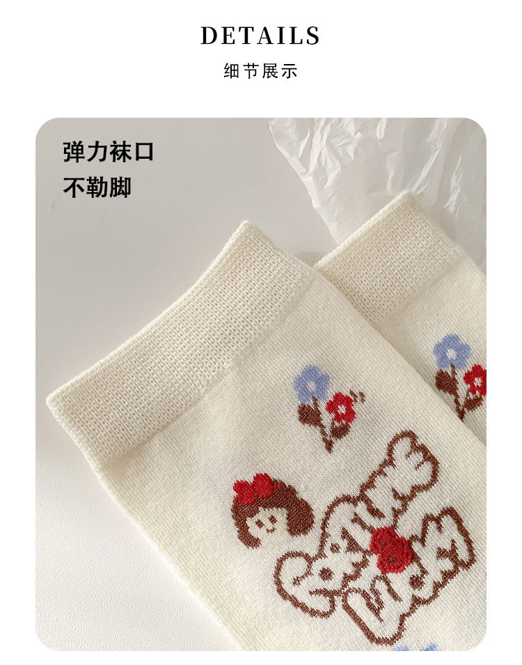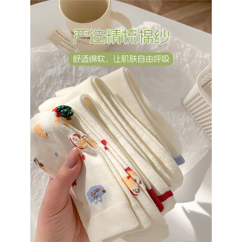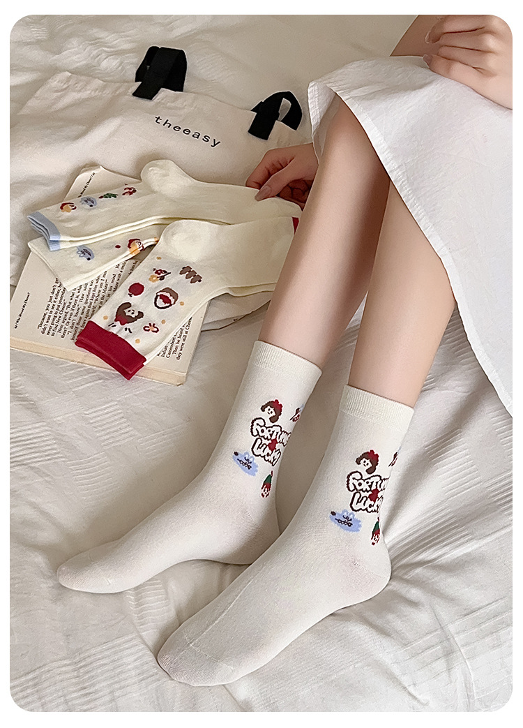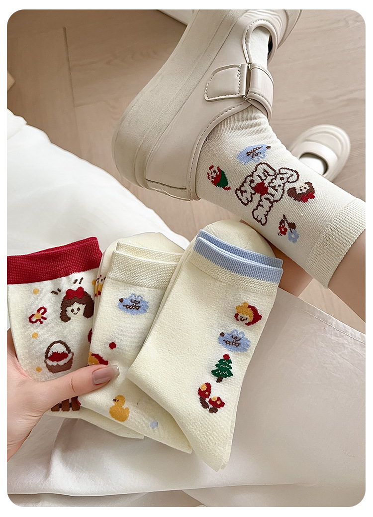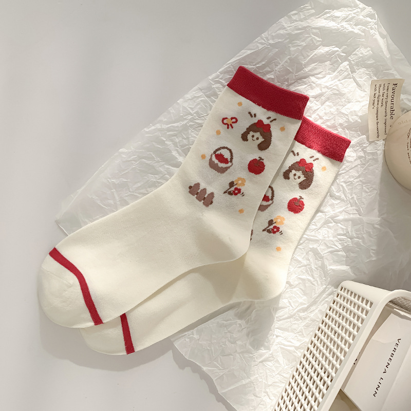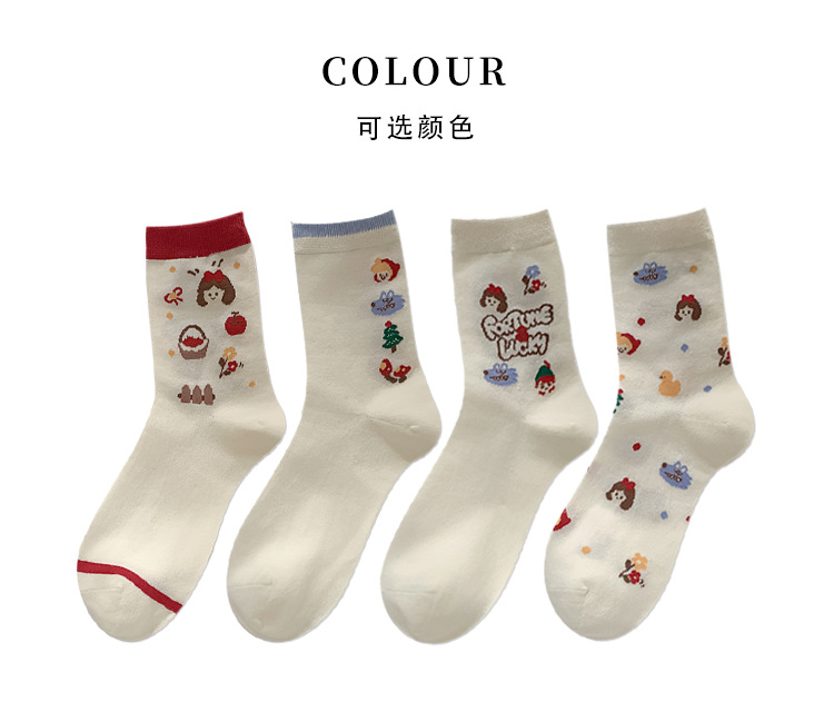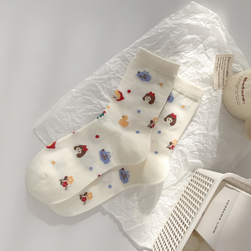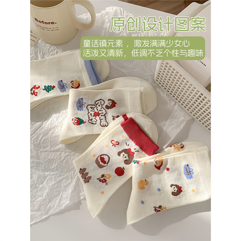 童话小镇袜子女春款纯棉中筒袜百搭女士可爱卡通长袜全棉春夏薄款