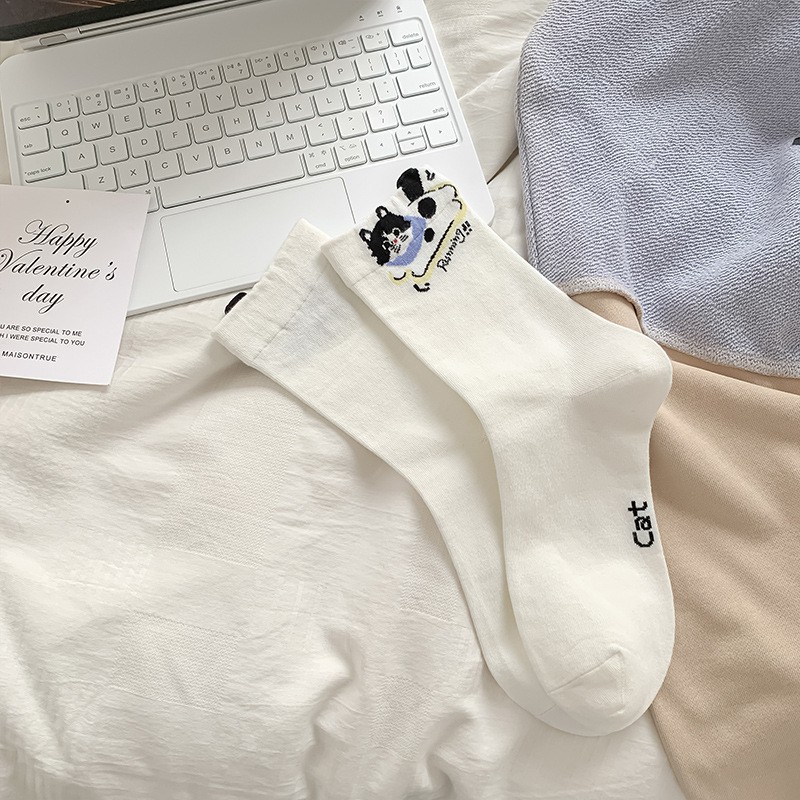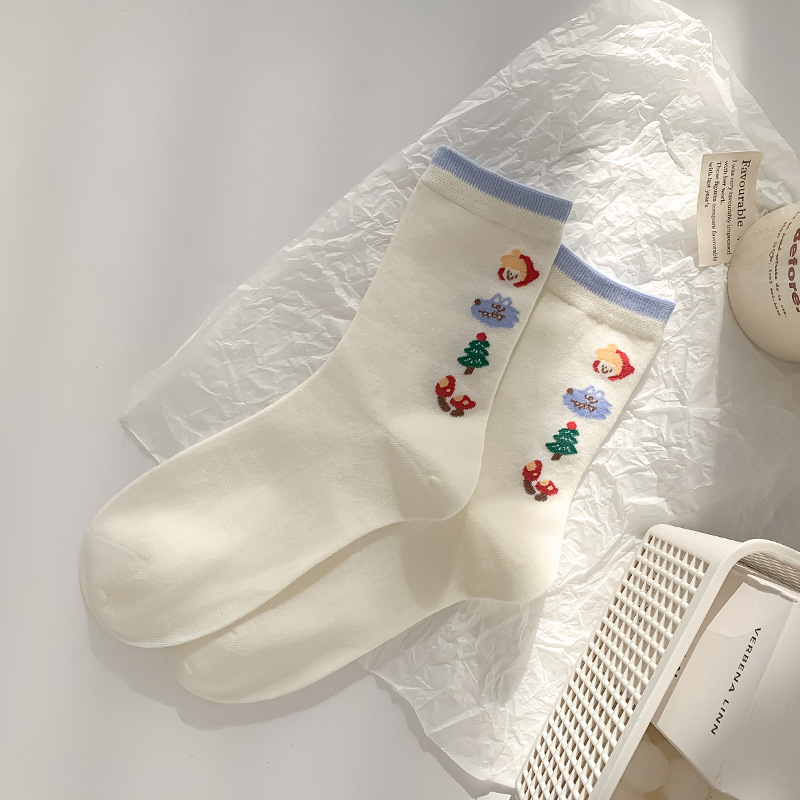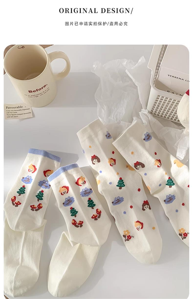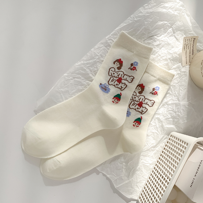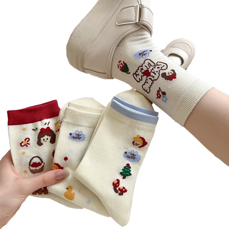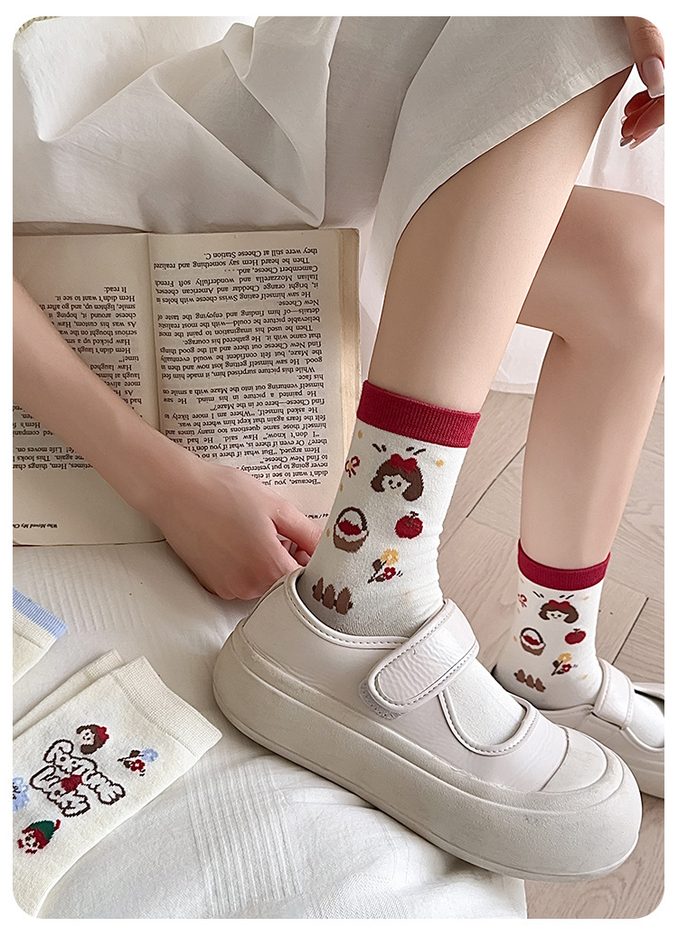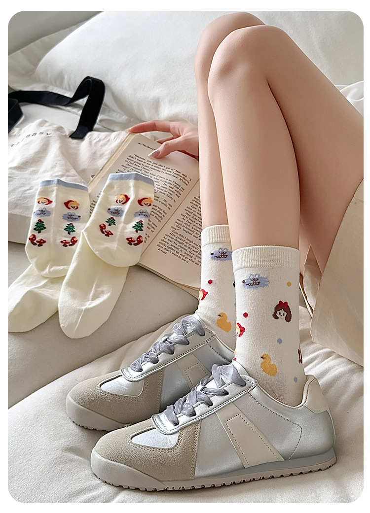 童话小镇袜子女春款纯棉中筒袜百搭女士可爱卡通长袜全棉春夏薄款