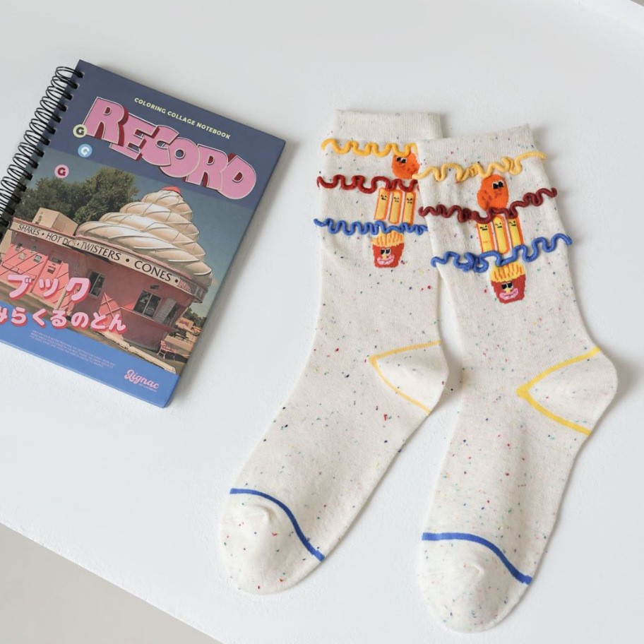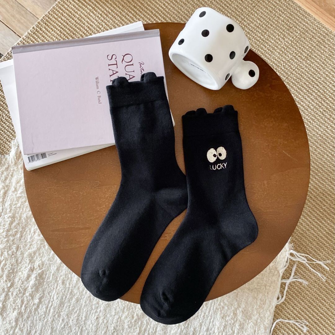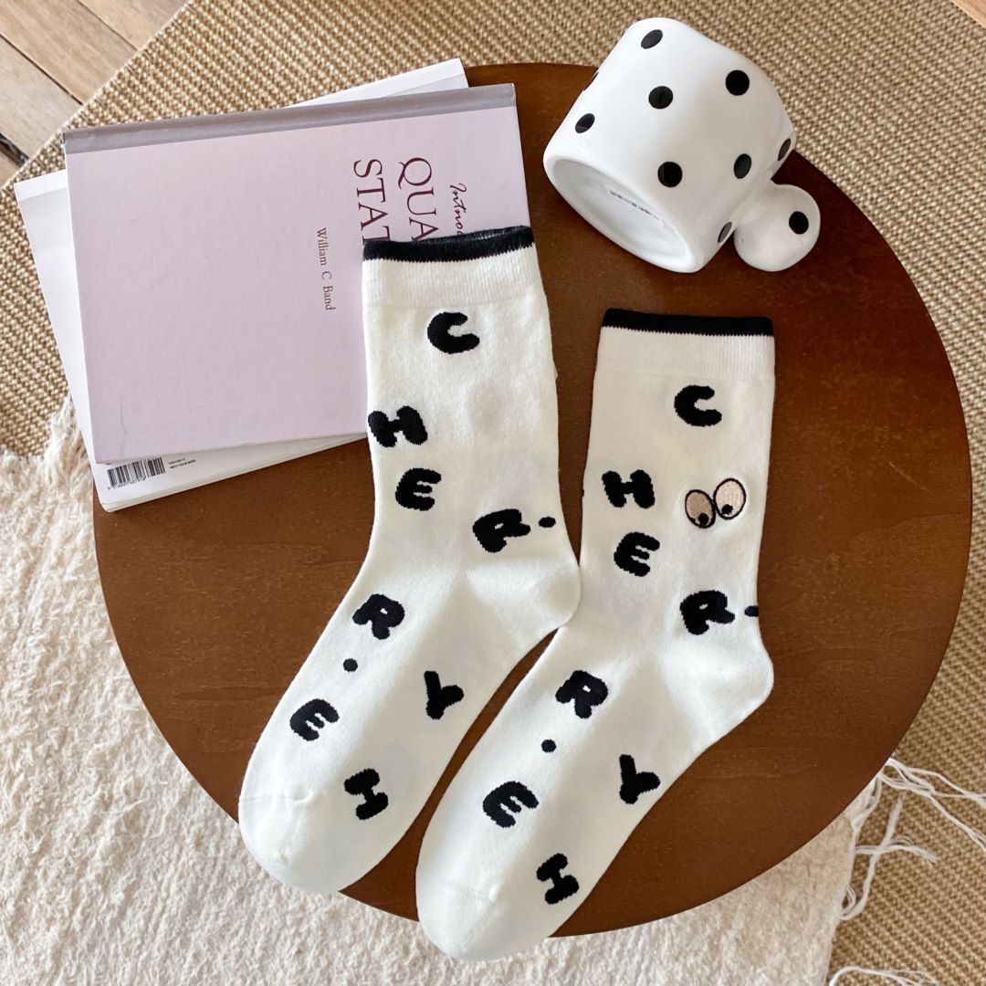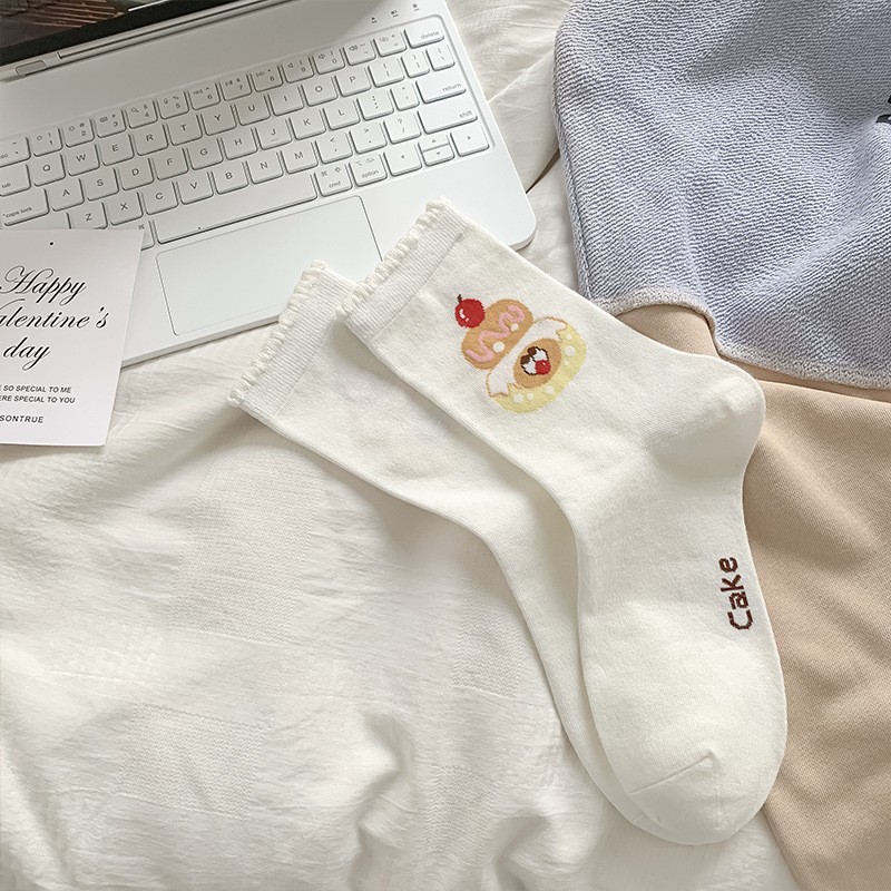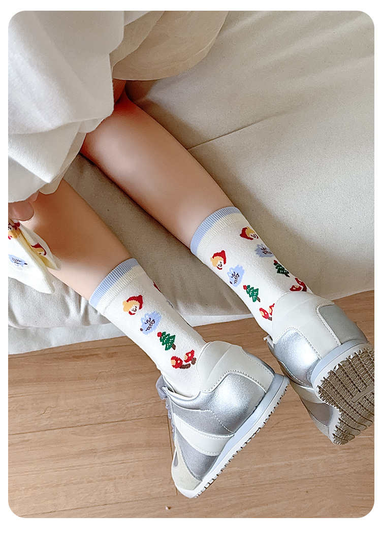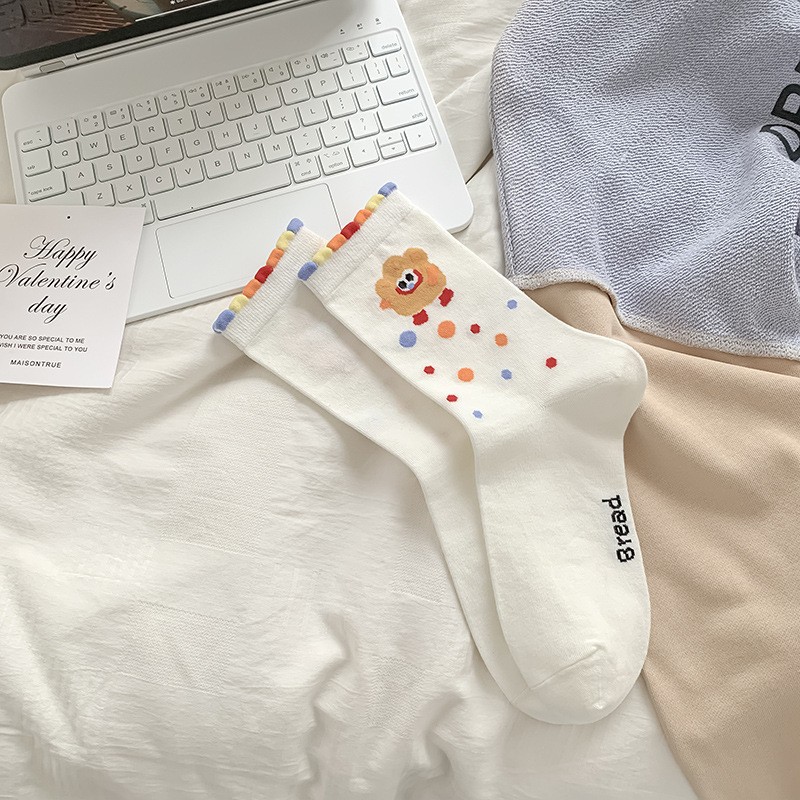 童话小镇袜子女春款纯棉中筒袜百搭女士可爱卡通长袜全棉春夏薄款
