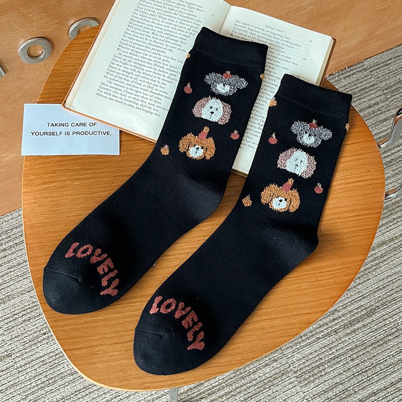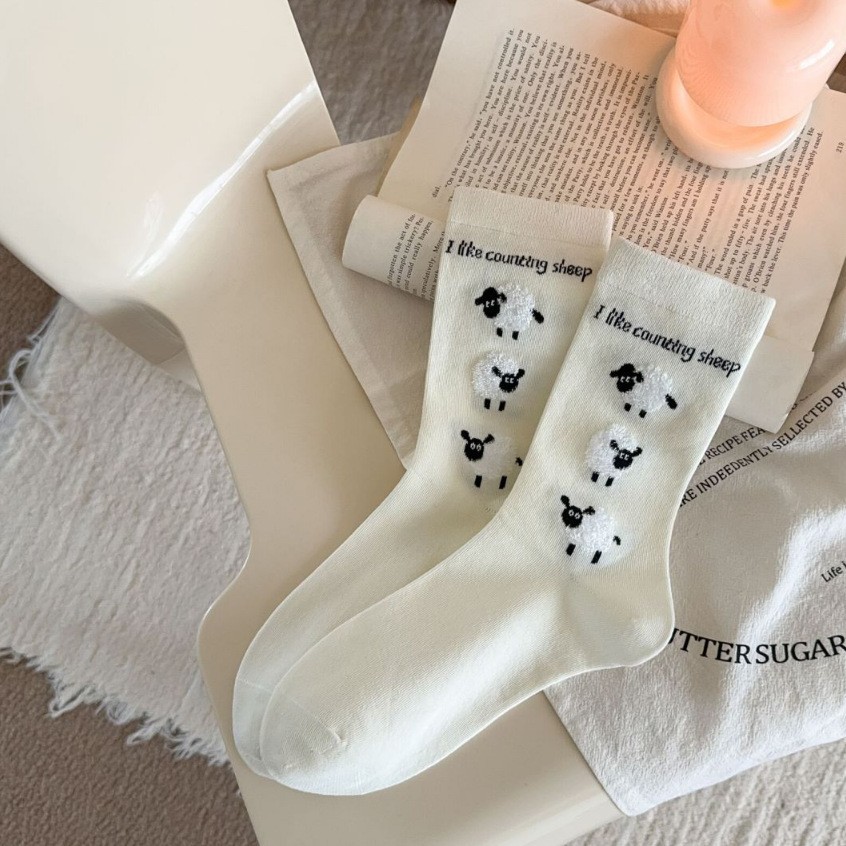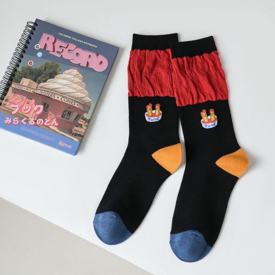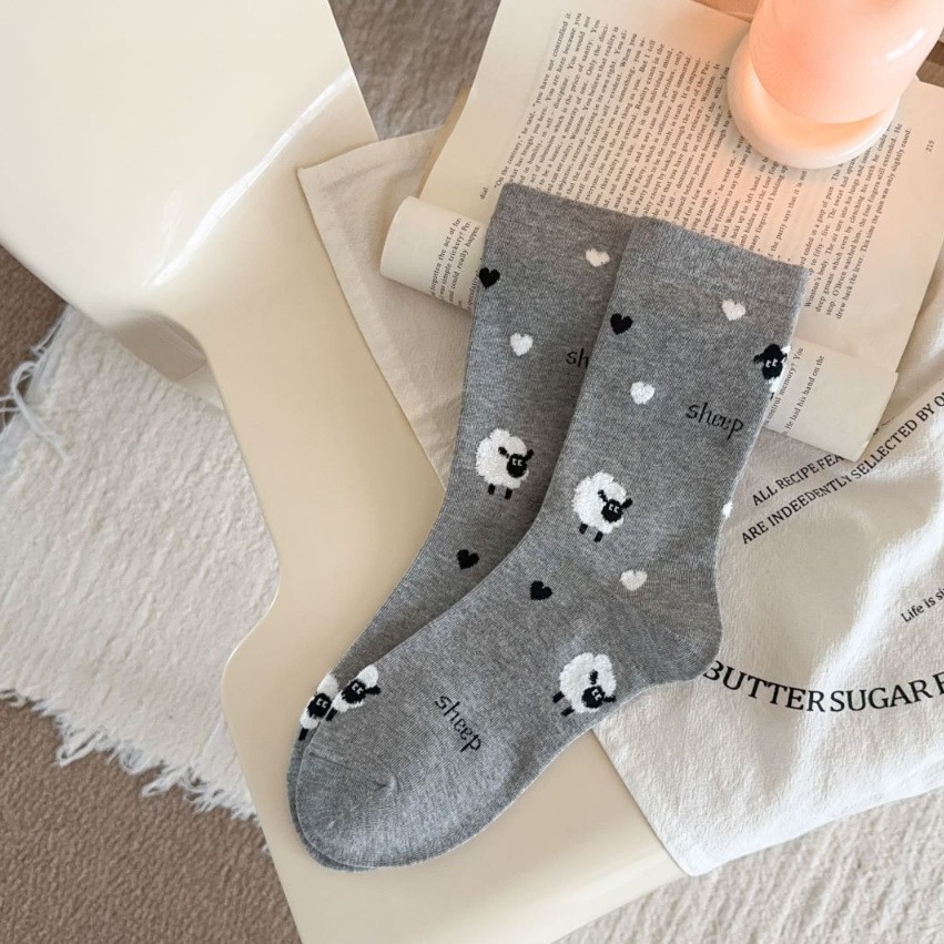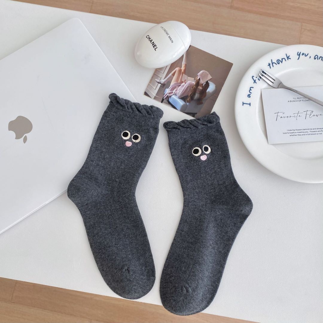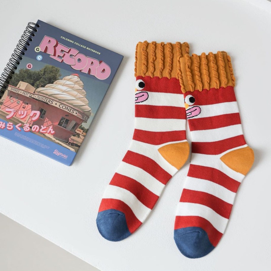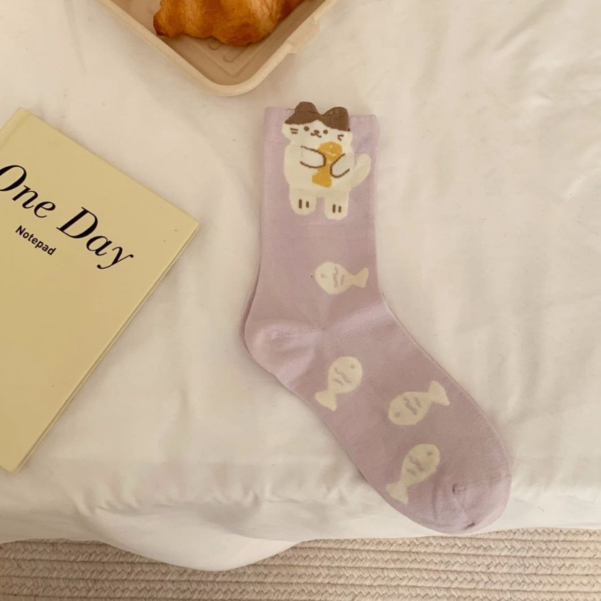 童话小镇袜子女春款纯棉中筒袜百搭女士可爱卡通长袜全棉春夏薄款